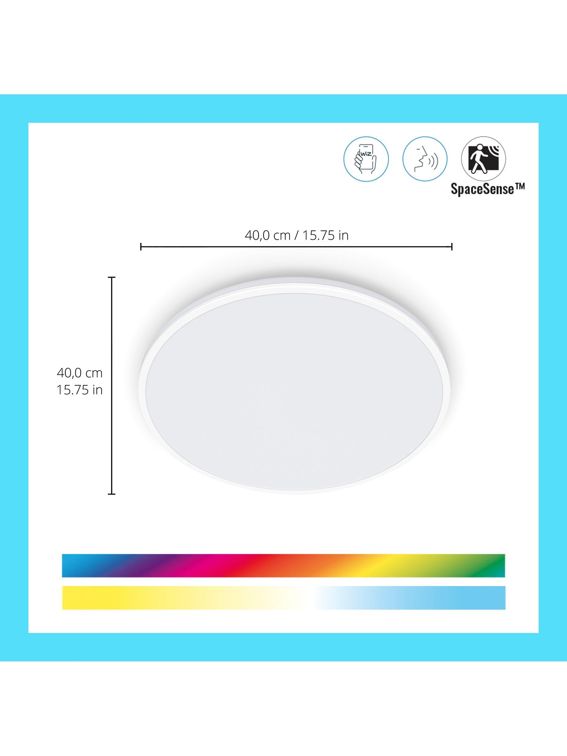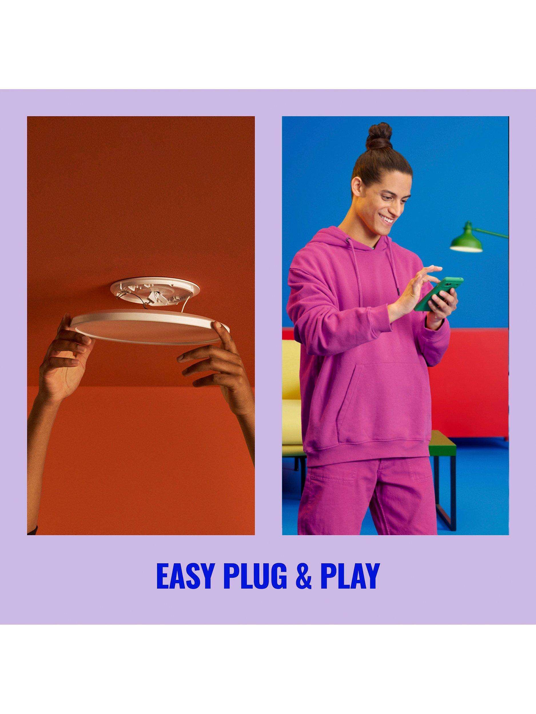 Experience a hover-like lighting effect and dynamic colour combinations with the Rune LED ceiling light. Decide your own vibe by using the centre zone to choose cool bright, or warm ambient white light. For a pleasant surprise every time, select the ring of full-colour light.