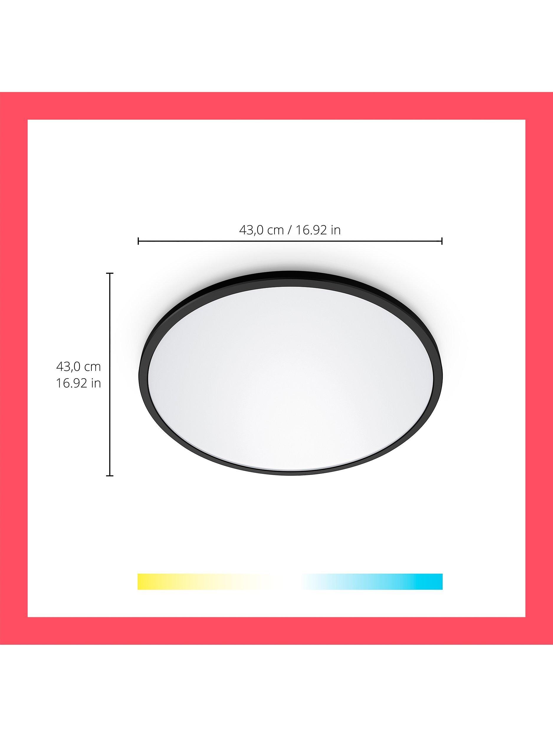 A ceiling light from WIZ to fit in with daily living. It's made with a large, circular surface designed to flood your room with light. Choose from a cool blue light to promote alertness and concentration or dim into a soft and warm colour to help you relax.