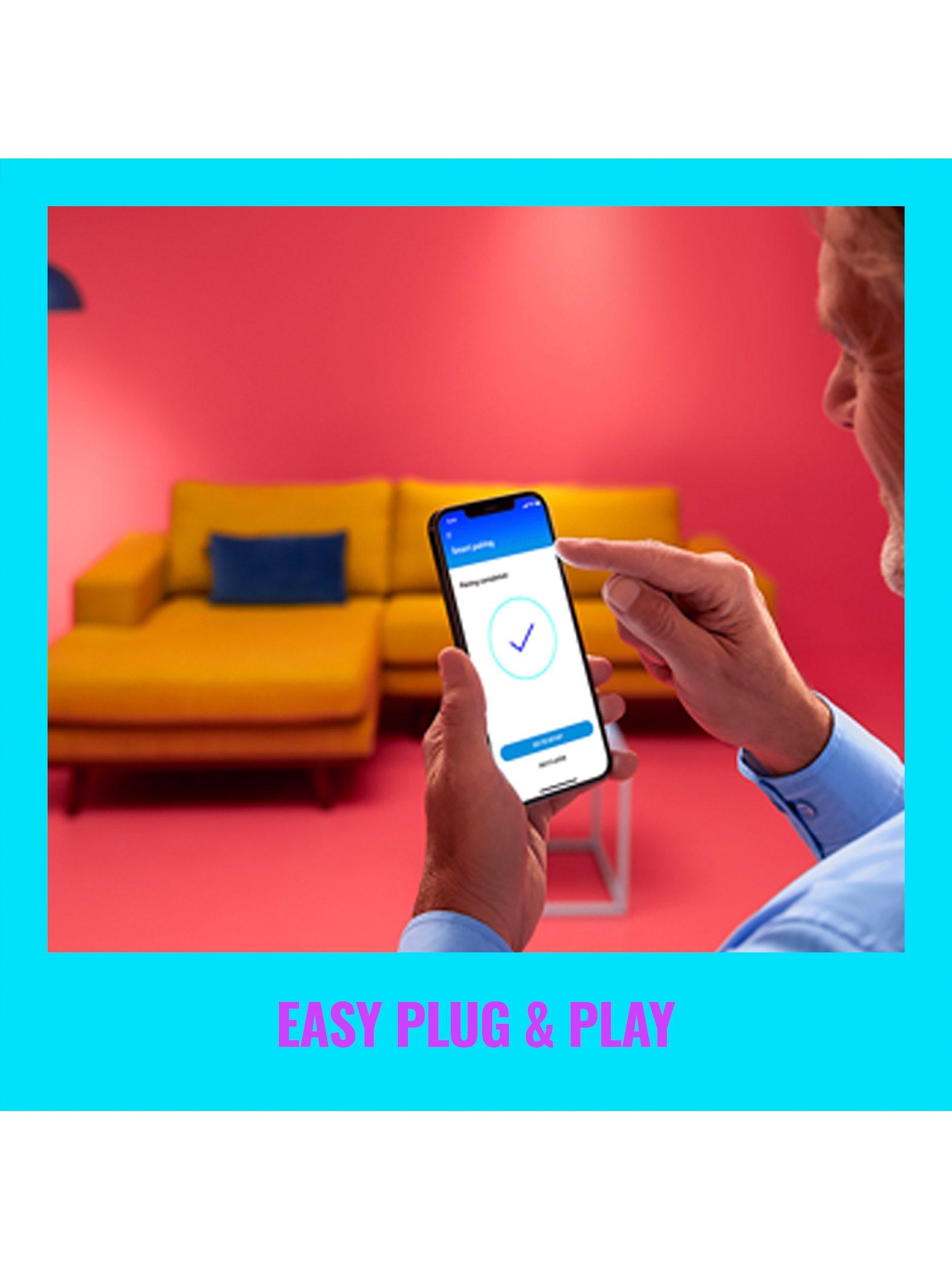 Smart lighting for daily living. This LED-integrated portable table lamp is WiFi and Bluetooth enabled and lets you bring colourful light into any corner of your home.