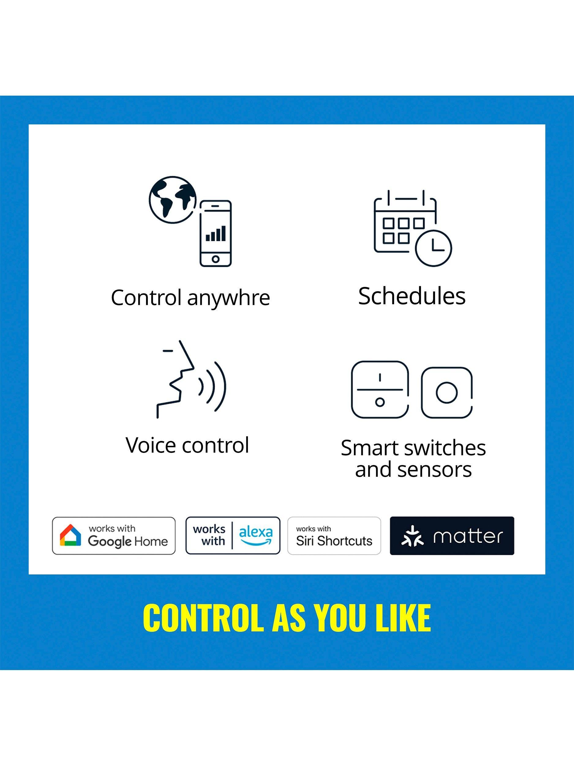 - Use simple voice commands for hands-free control. It's compatible with Google Assistant, Alexa and Siri Shortcuts