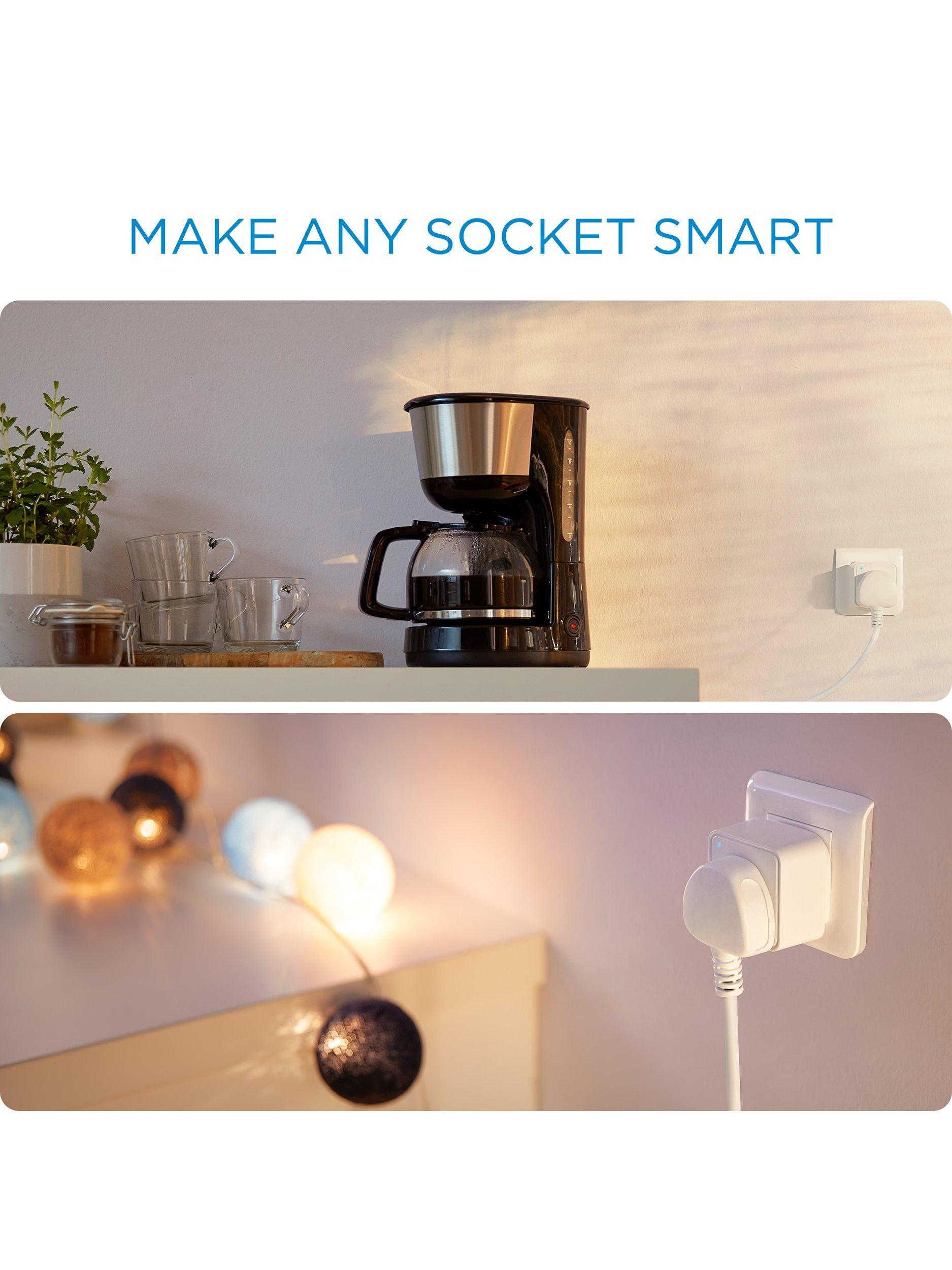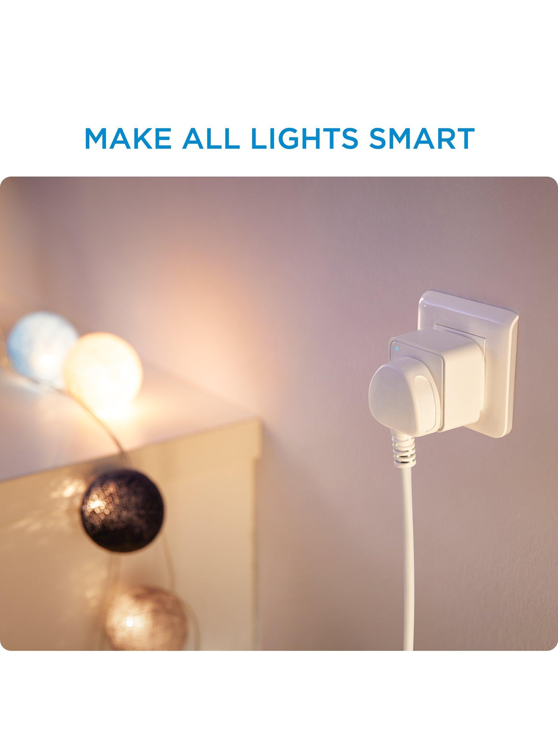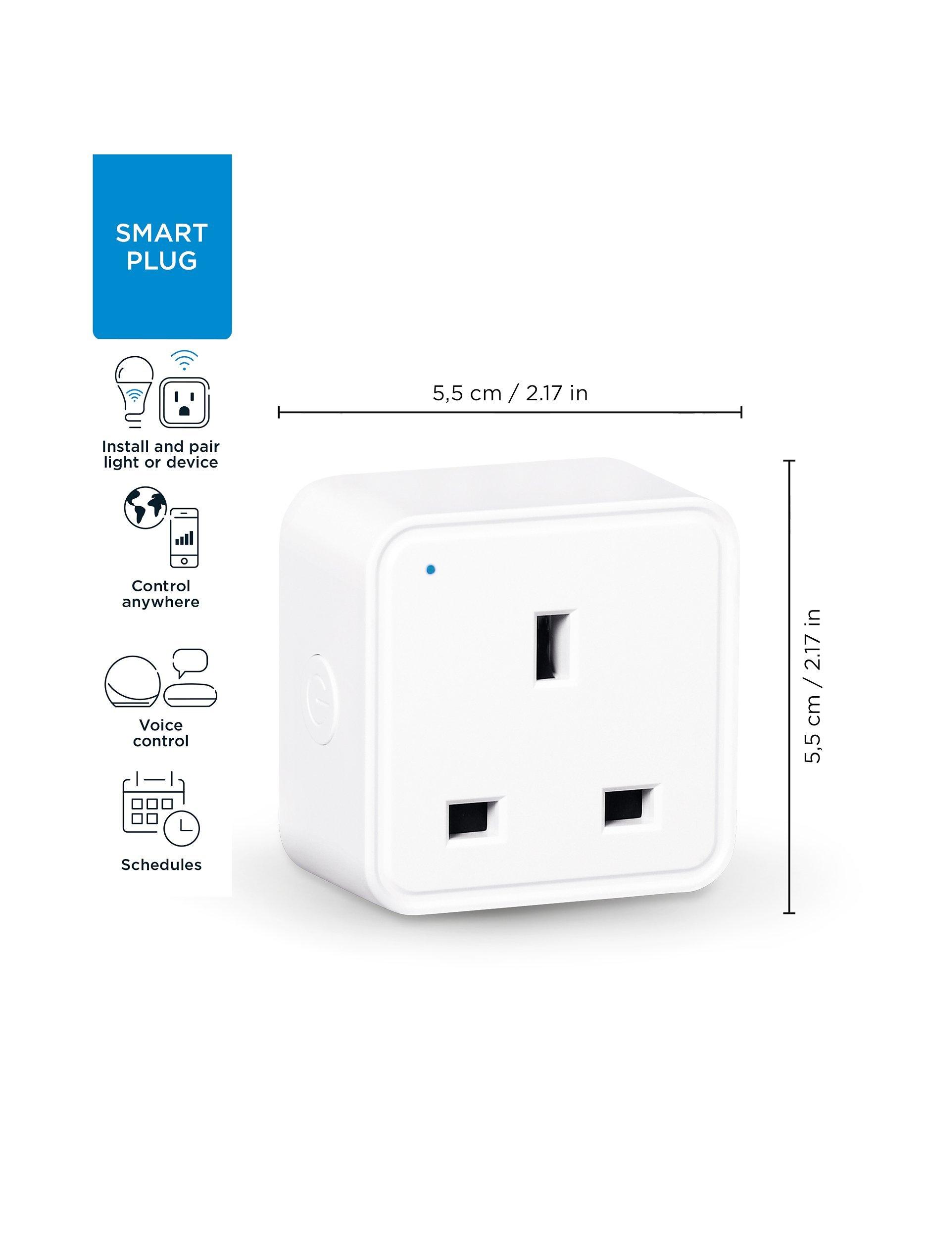 The WiZ smart plug can make any socket smart. Wi-Fi enabled, just plug in your ordinary light or appliance and you'll be able to control them with your smartphone or your voice. With schedules, you can turn devices on and off to fit your daily routine and save energy. You don't need to worry about whether you've left your lights or appliances on at home, because you can check on them with your smartphone.