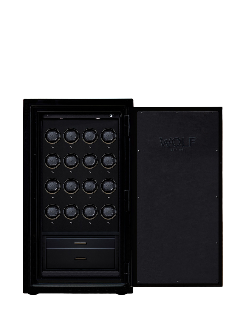 Forged in American steel, UL tested and certified for burglary and fire, the WOLF Atlas 16 Module Winder Safe is an impenetrable fortress. Painted steel polished to a mirror finish, the drawers are lined with LusterLoc™ treated fabrics that stop tarnishing for 35 years. Watch winders are controlled by WOLF’s Bluetooth connected app - control one or all winders at the same time.