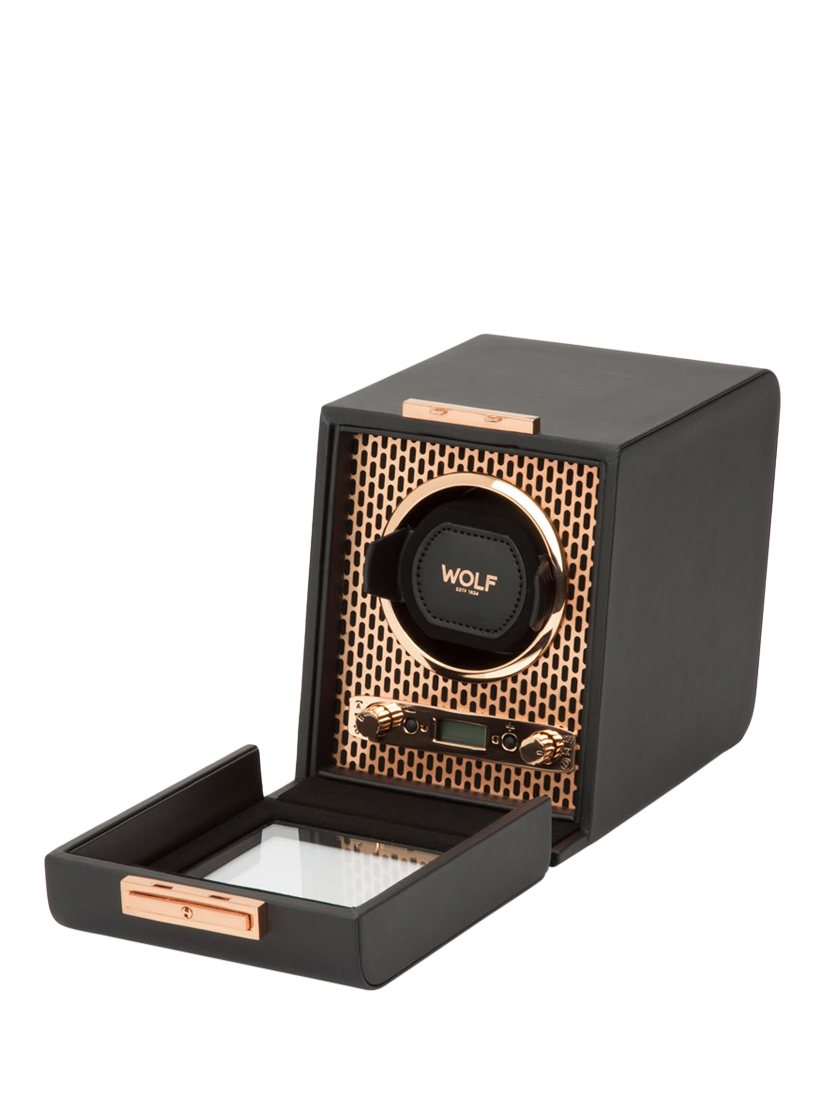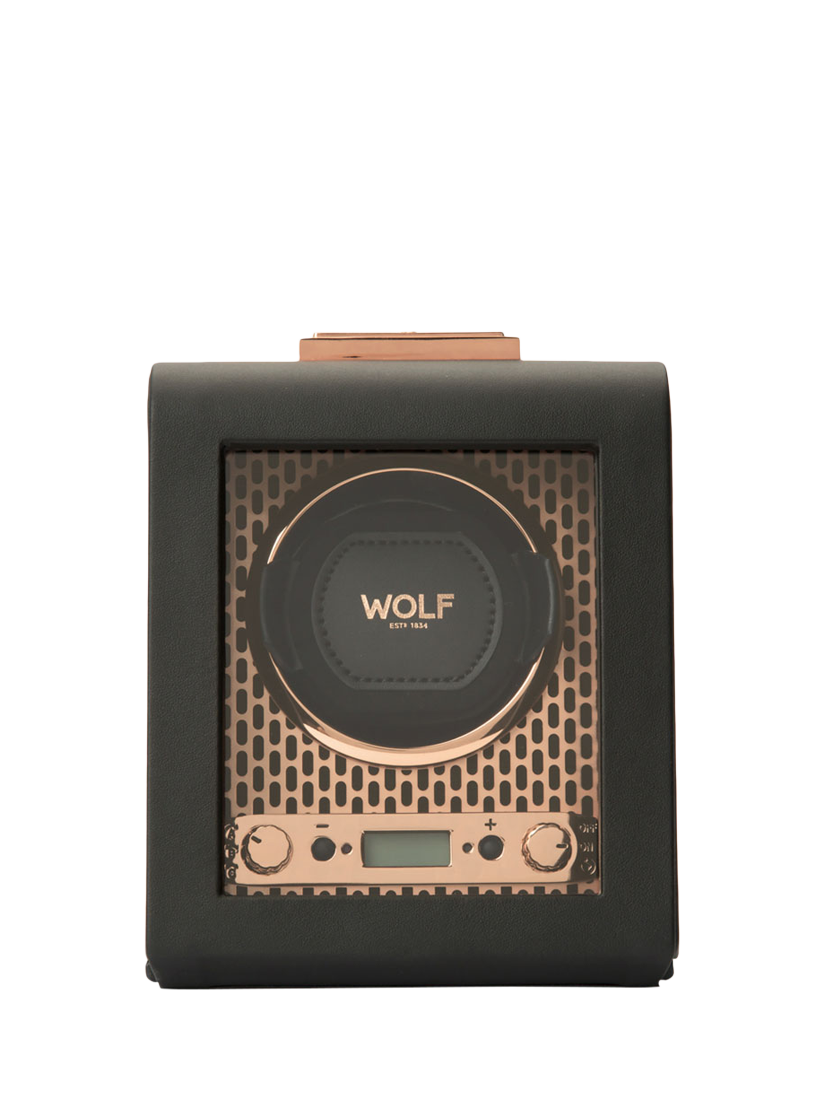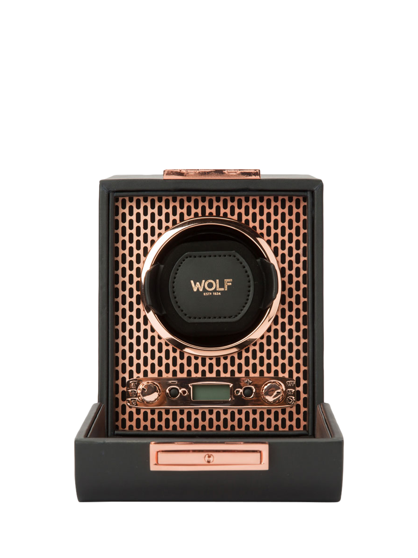 WOLFAxis Vegan Leather 1 Module Watch Winder, Copper Plated Steel