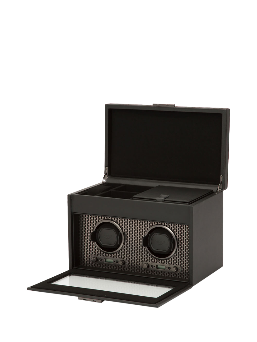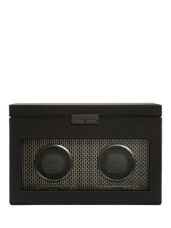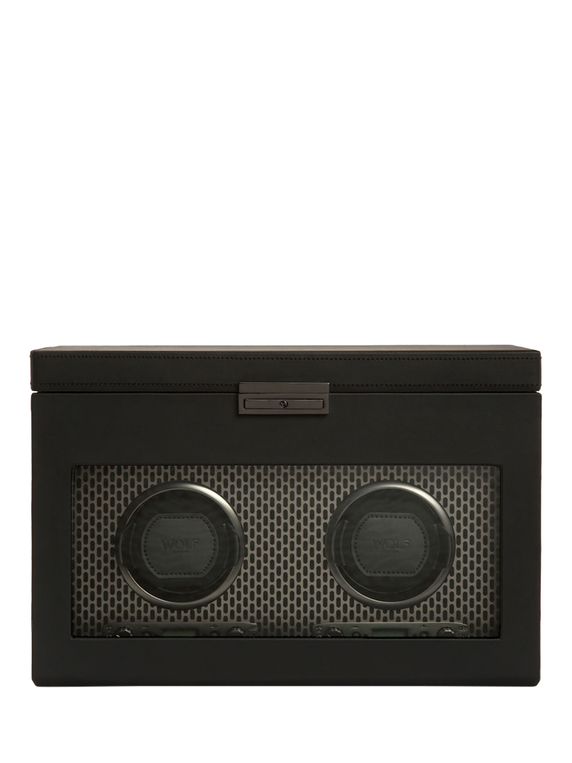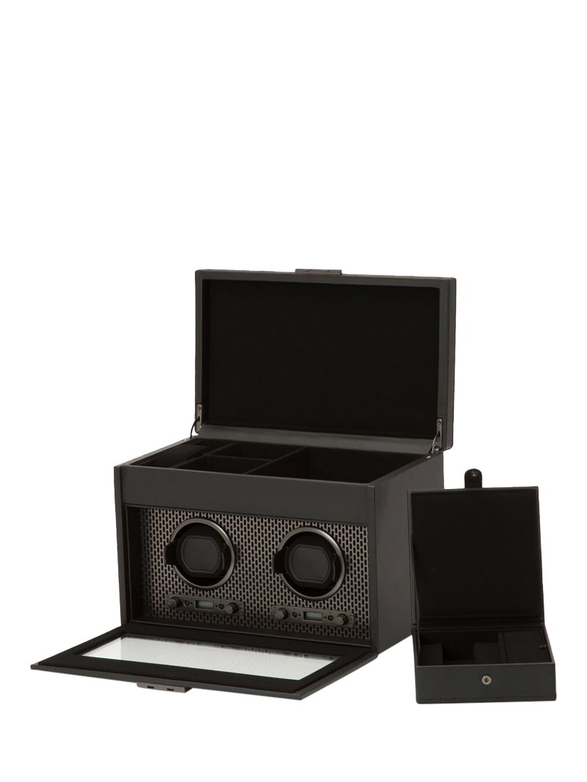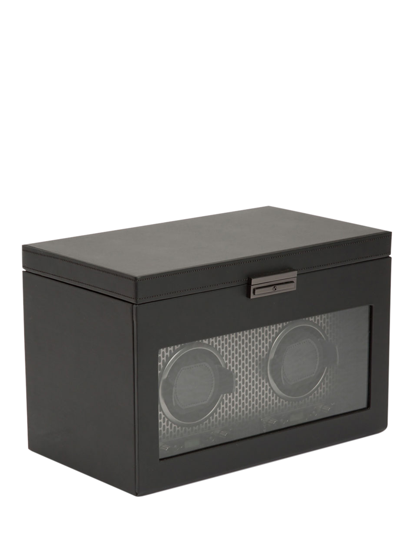 WOLFAxis Vegan Leather 2 Module Watch Winder With Storage, Powder Coated Steel