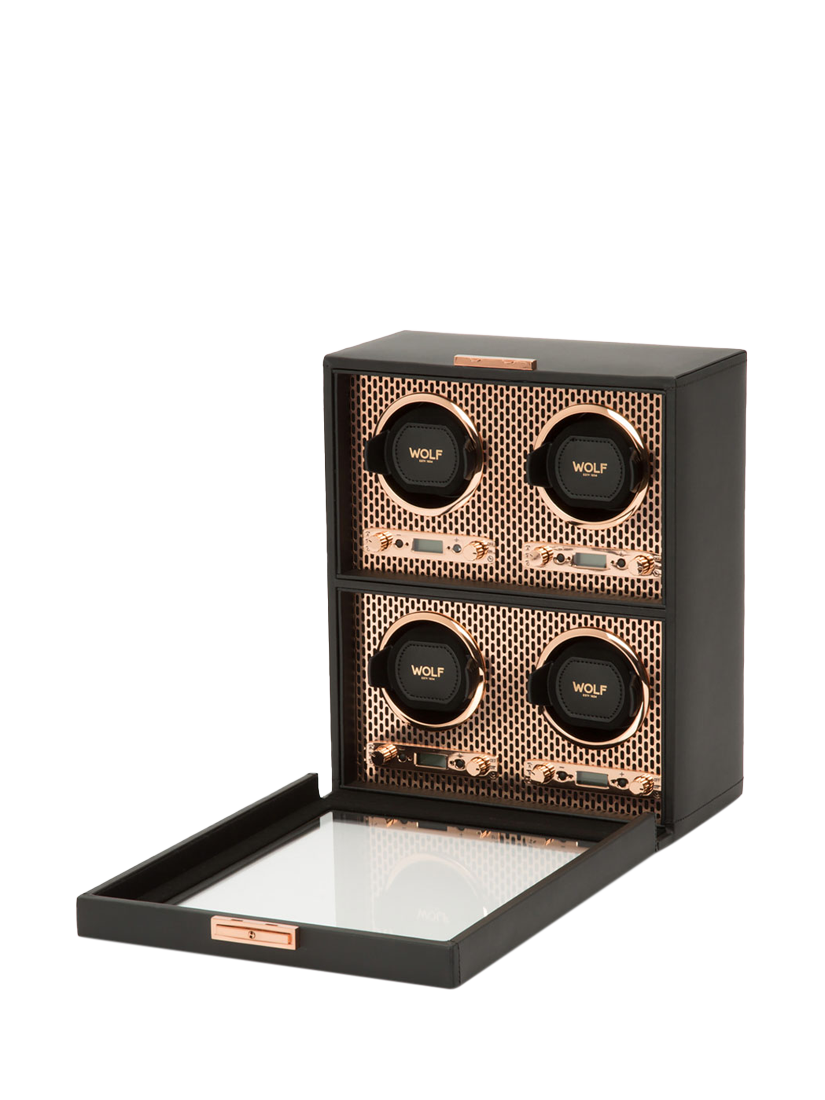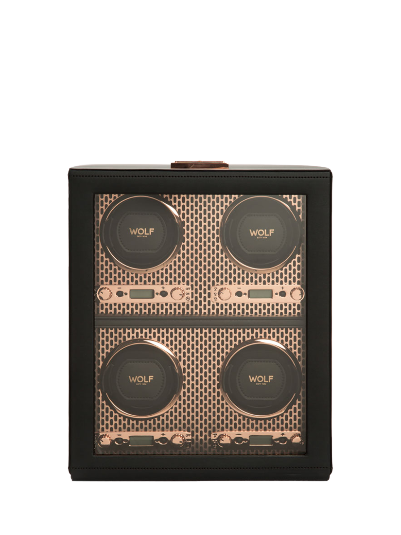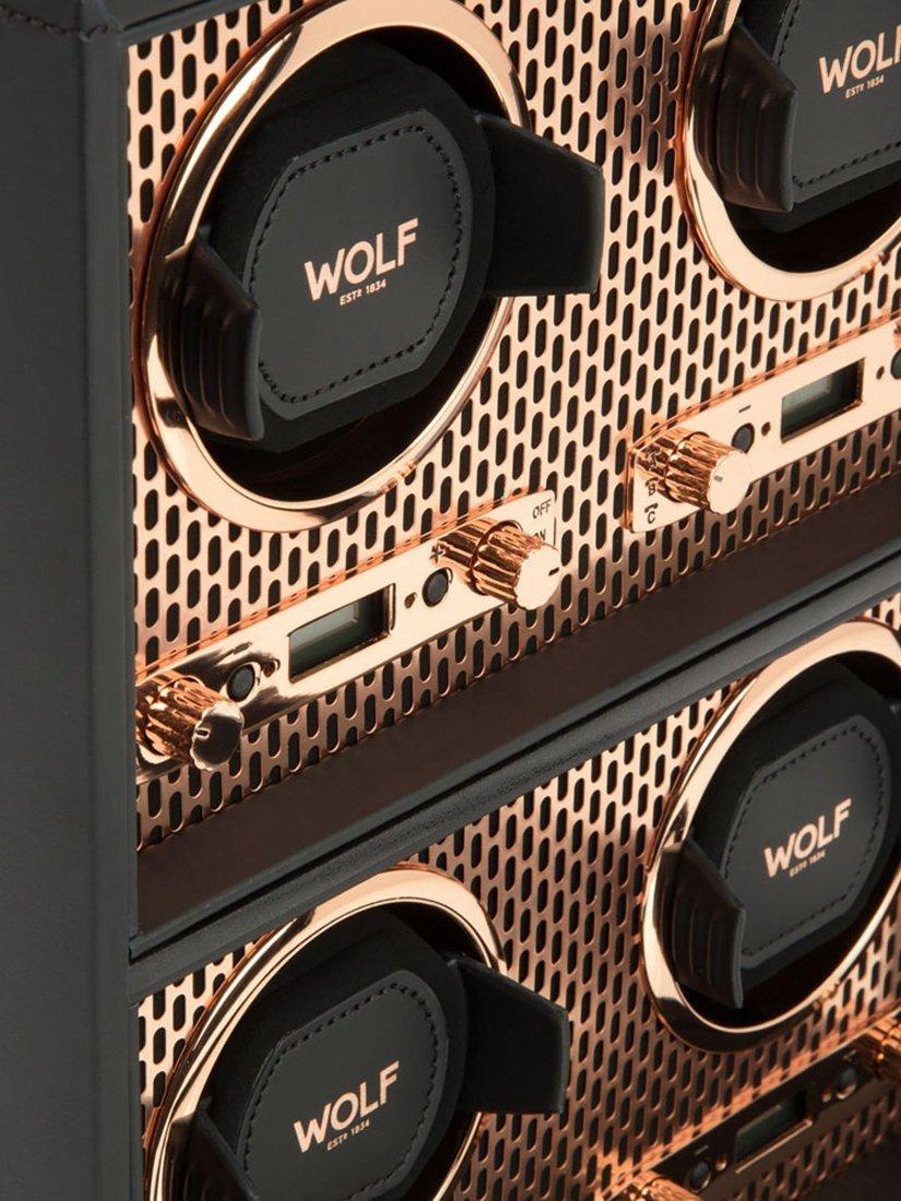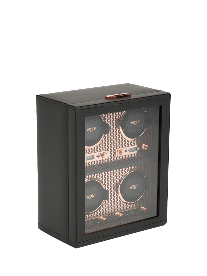 WOLFAxis Vegan Leather 4 Module Watch Winder, Copper Plated Steel