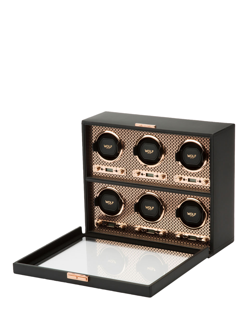 Bold luxury and faultless design, take the Axis vegan leather 6 module watch winder for a spin.