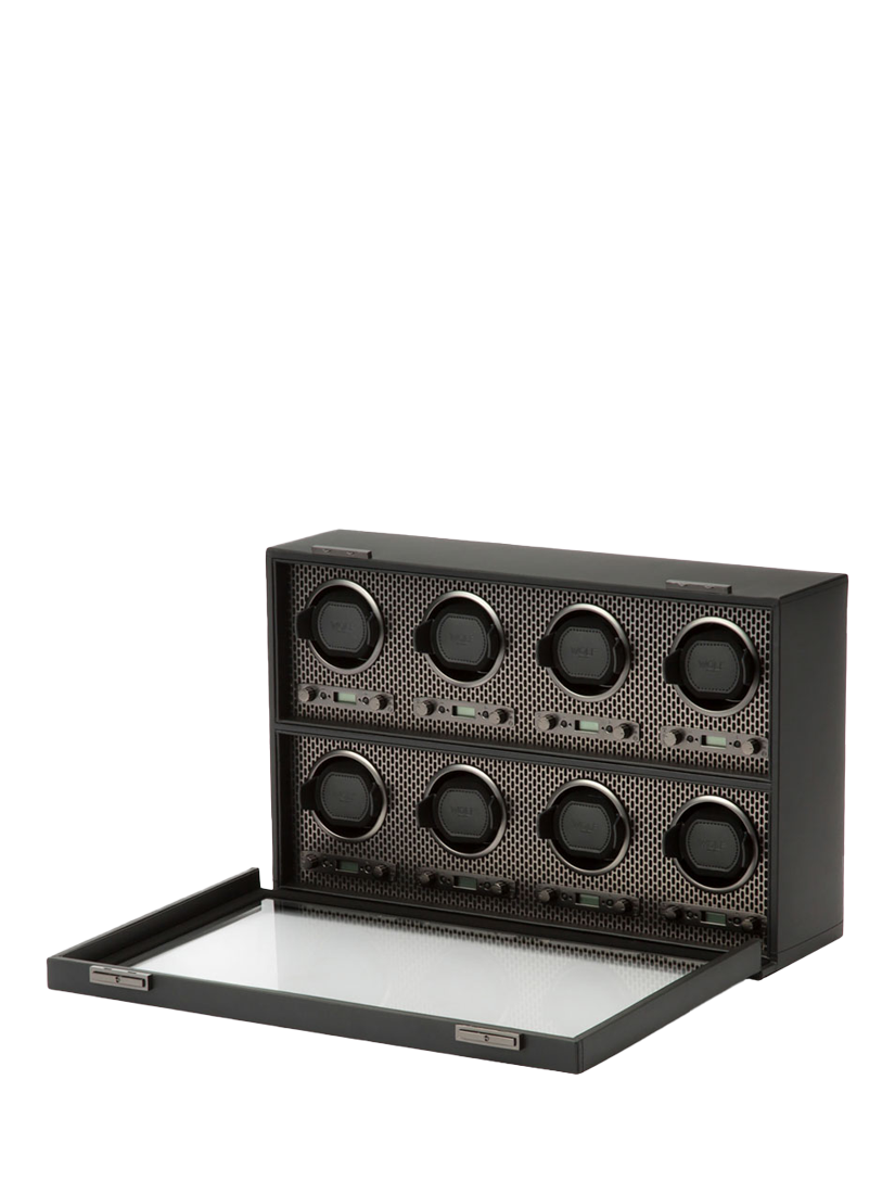 WOLFAxis Vegan Leather 8 Module Watch Winder, Powder Coated Steel
