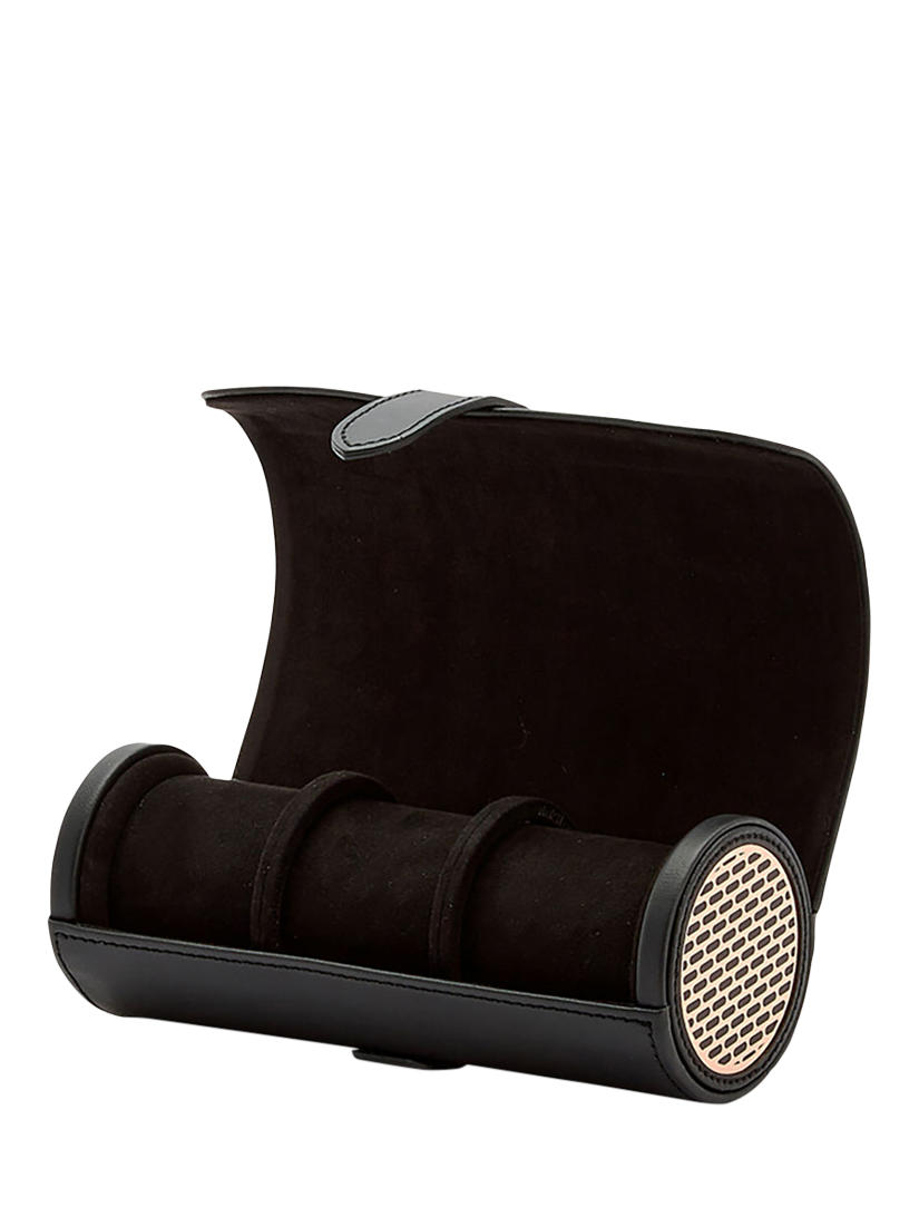 Also features a secret jewellery capsule inside the watch roll, with three compartments for safely storing cufflinks, rings, and other smaller valuables.