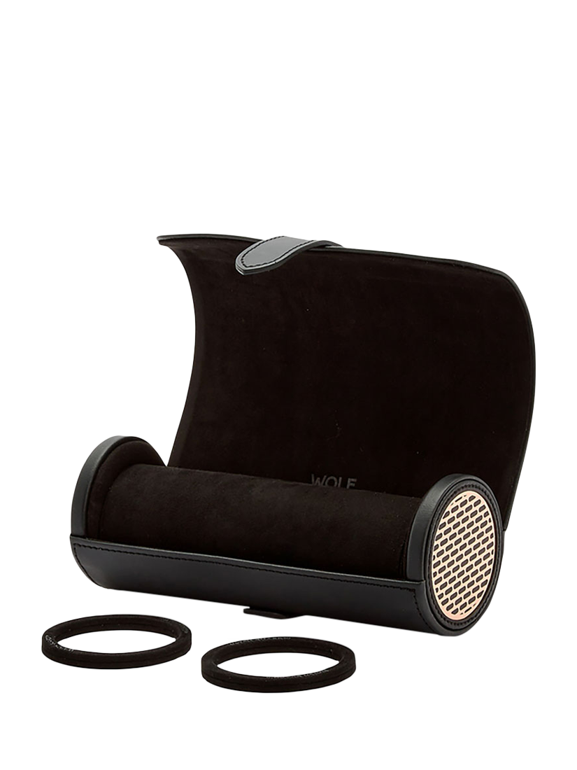Keep your timepieces safe and secure in style with the WOLF Axis triple watch roll. It includes space for 3x watches, with 2x watch guards and snap closure.