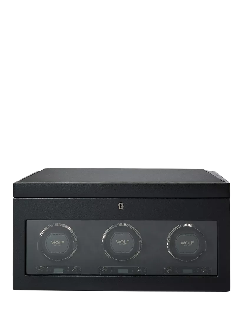 WOLFBritish Racing Vegan Leather 3 Module Watch Winder With Storage, Black