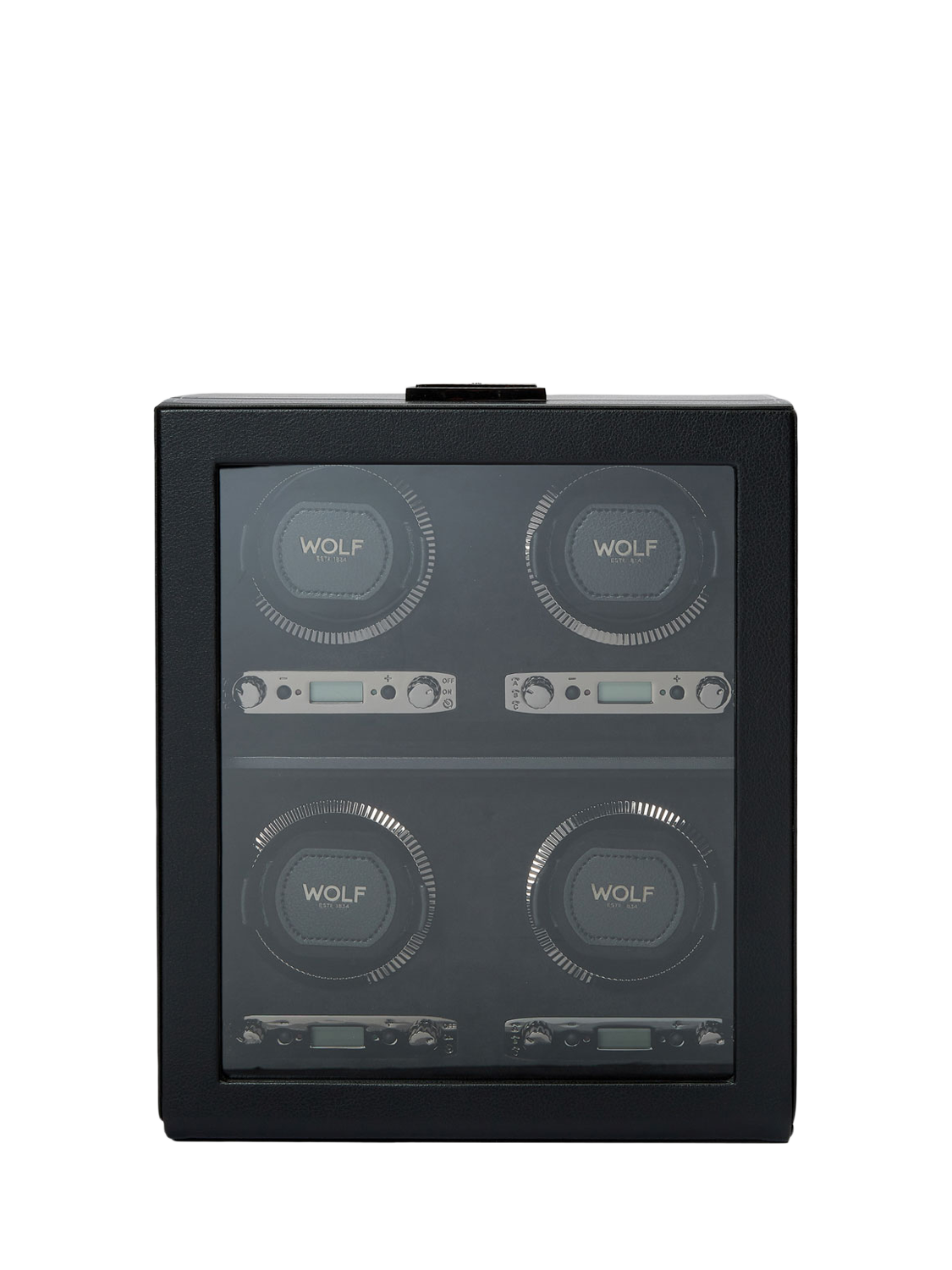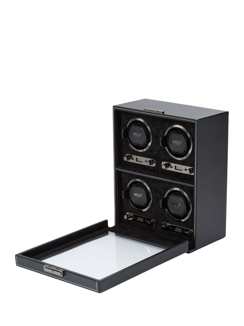 Take your watches for a spin in the WOLF British Racing 4 module watch winder.