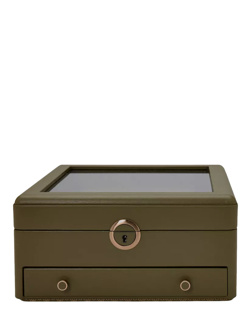 WOLFEarth Apple Leather Watch Stand Box with Glass Lid, Olive