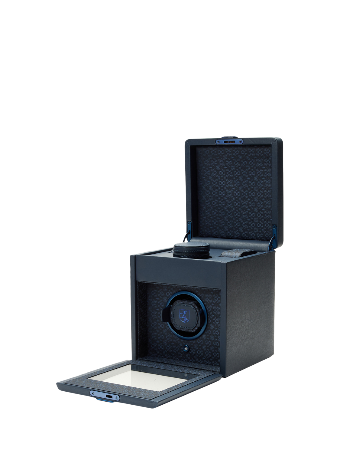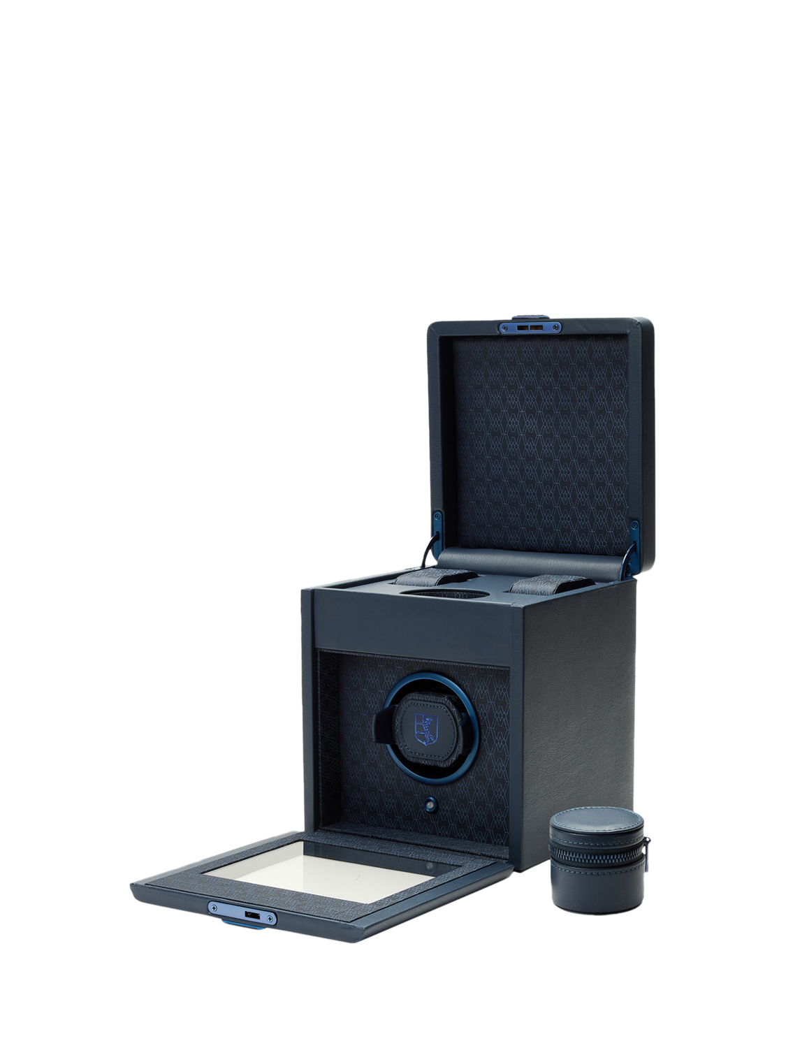 Watch protection and winding: Keeps 1x watch safe and wound, ready to wear. Use the WOLF app to set turns per day and direction of rotation. Removable circular zip case and storage for 2x suspended watch cushions in top section.