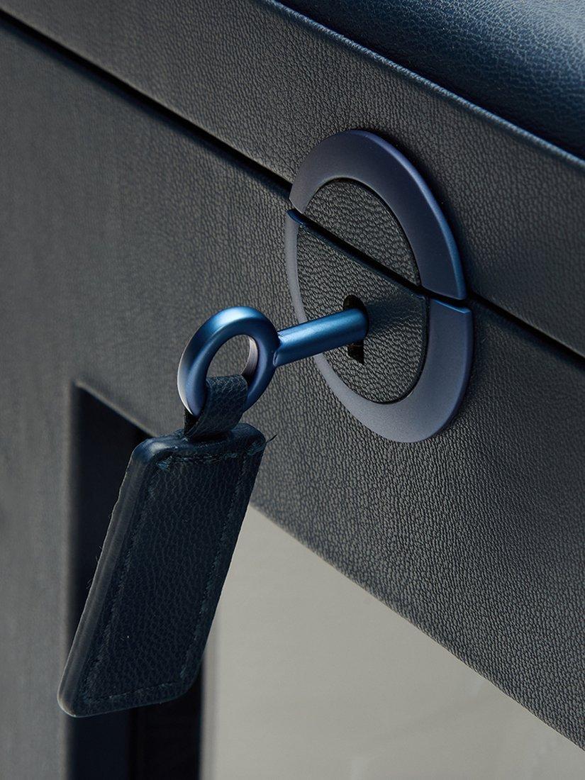 Choose your watch’s required turns per day and direction via the WOLF Bluetooth app. In the top storage section find a handy removable circular zip case and storage for two more watches.