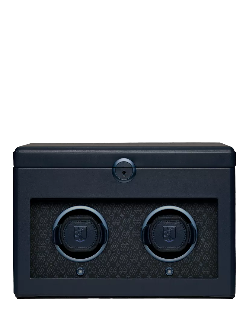 WOLFEarth Vegan Apple Leather 2 Module Watch Winder, Midnight Blue
