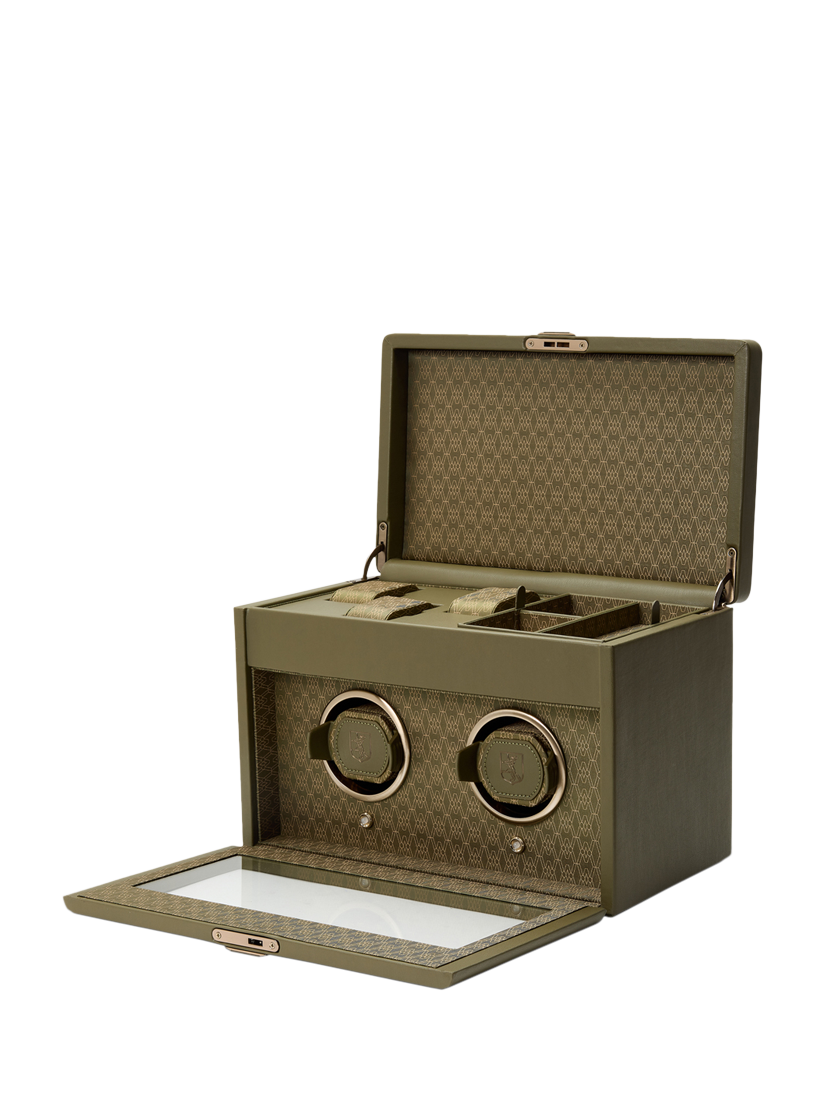 WOLFEarth Vegan Apple Leather 2 Module Watch Winder, Olive