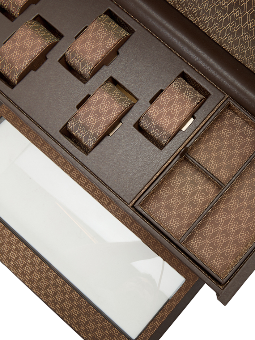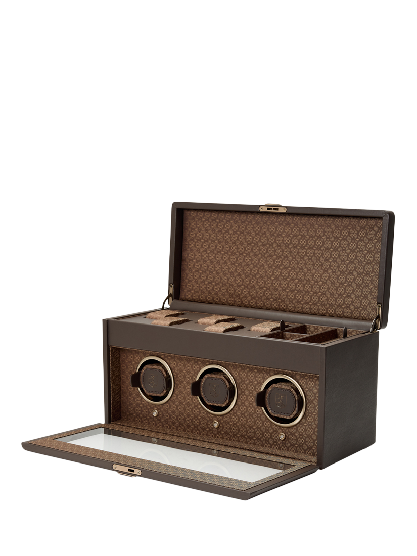 Individually set the required turns per day and direction for your three watches via the WOLF Bluetooth app. In the top storage section find five suspended watch cushions and removable accessory tray with multiple sections for your valuables.