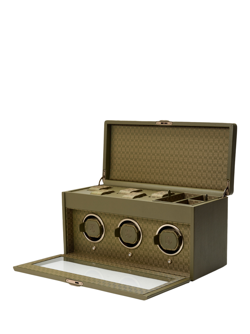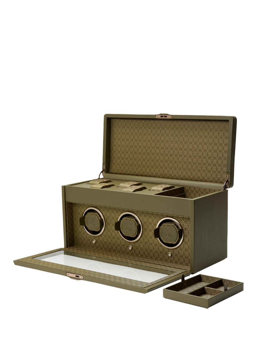 WOLFEarth Vegan Apple Leather 3 Module Watch Winder, Olive