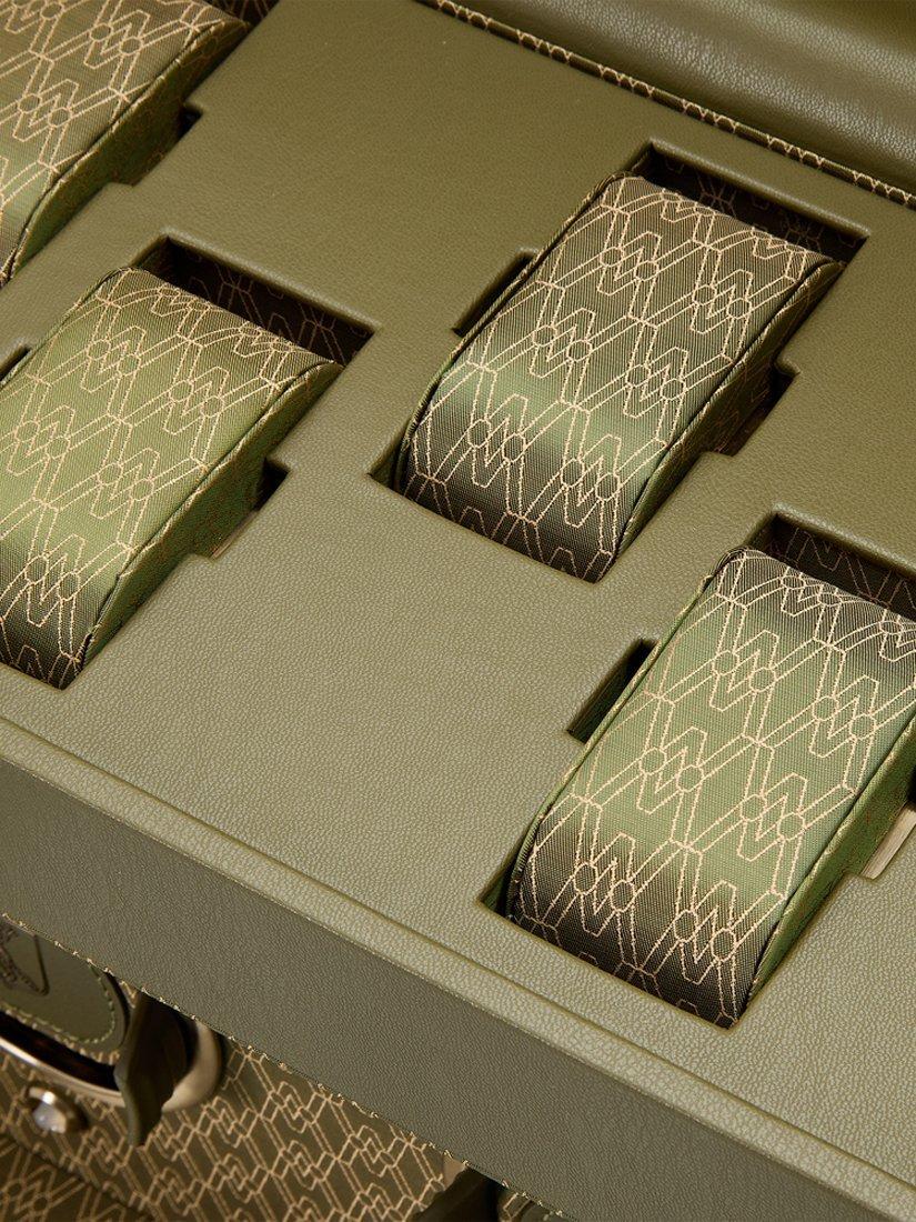 Watch protection and winding: Keeps 3x watches safe and wound, ready to wear. Use the WOLF app to set turns per day and direction of rotation. Storage for 5x watches on suspended watch cushions and removable accessory tray in top section.