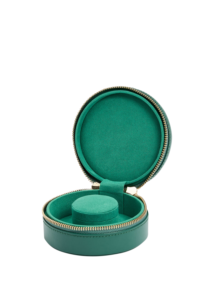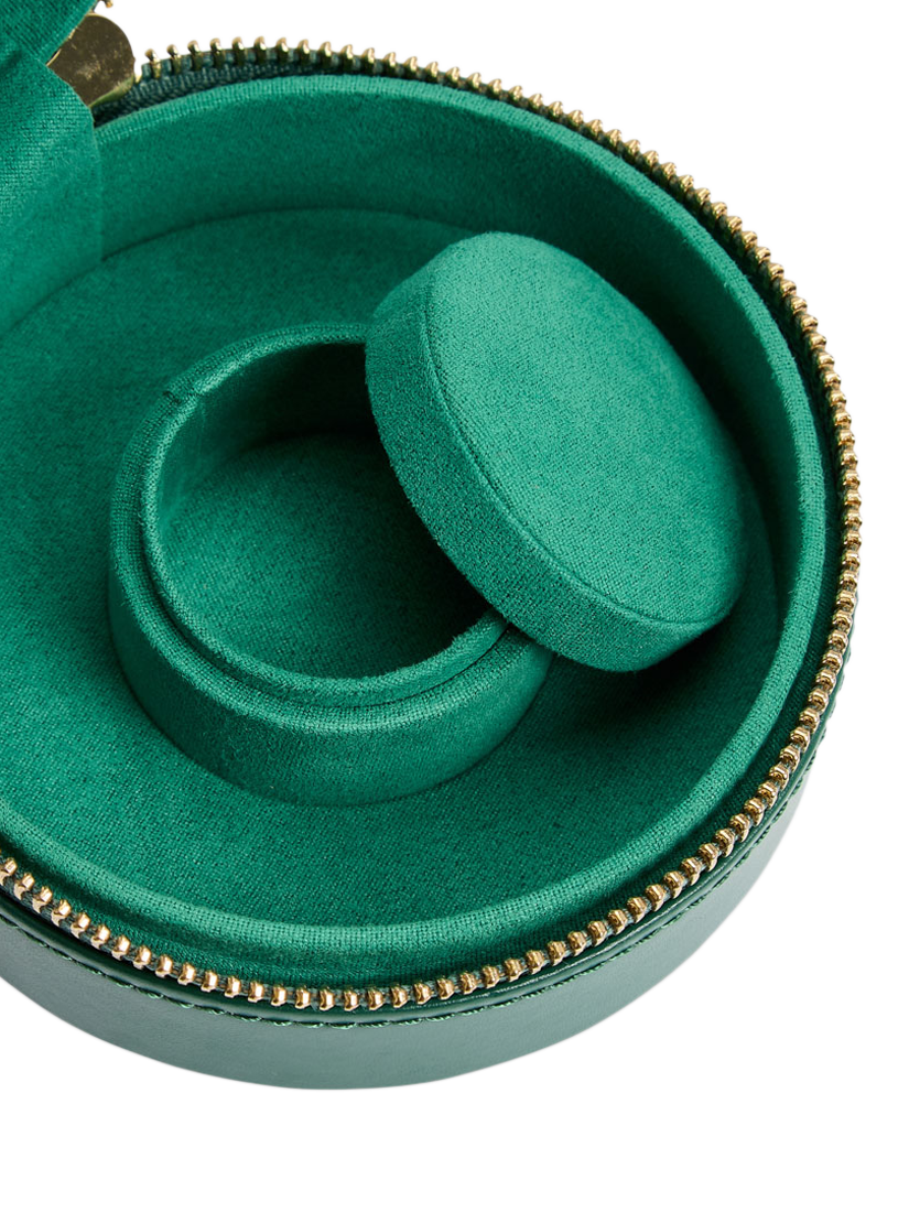 The WOLF Sophia round zip case is designed to protect jewellery with style and function in mind. The zip case includes specialised storage for charm jewellery, bracelets and more. Available in sweet neutrals and rich colours inspired by the natural world, Sophia pops on your dresser or in your travel bag.