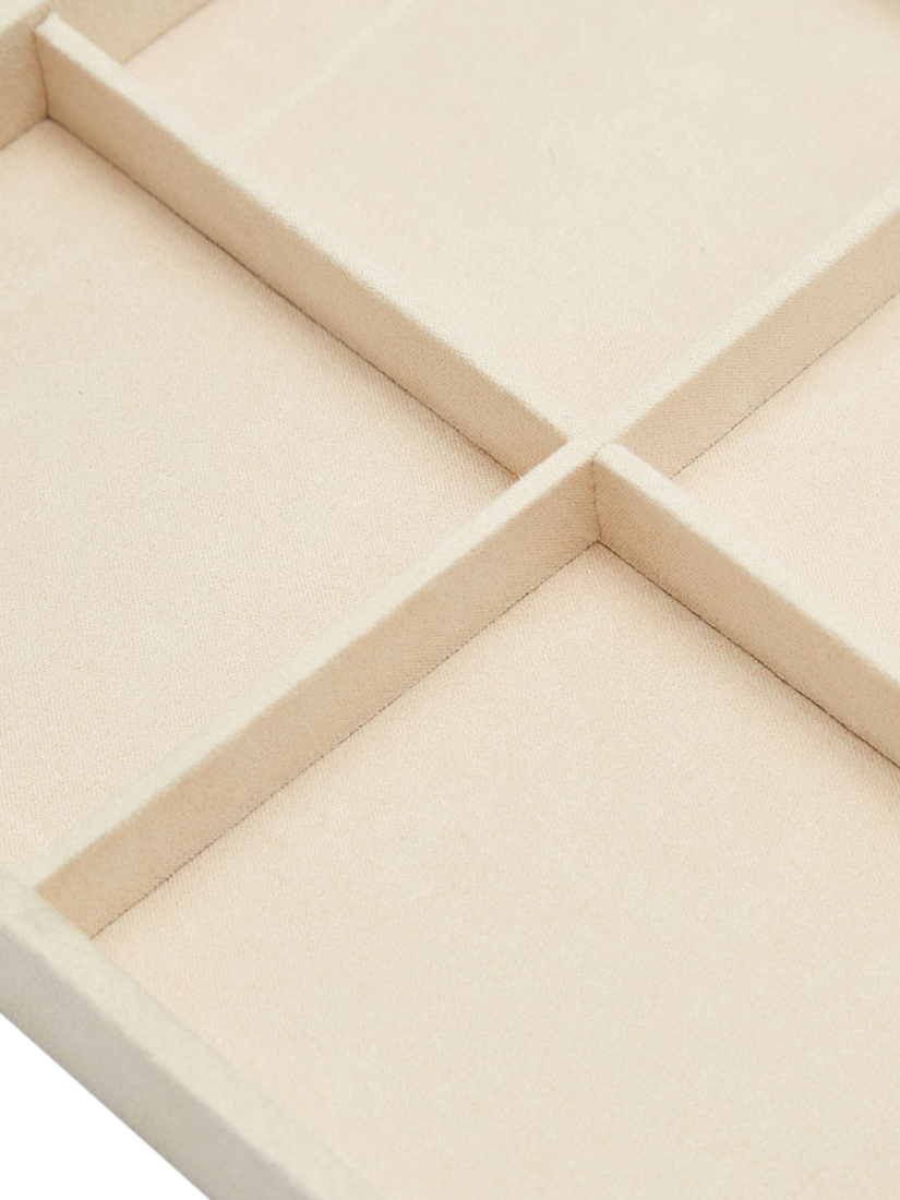 Beautifully organise and display jewellery with the WOLF Vault bracelet half tray insert. The insert fits neatly into all stackable vault trays and includes 4 bracelet compartments.