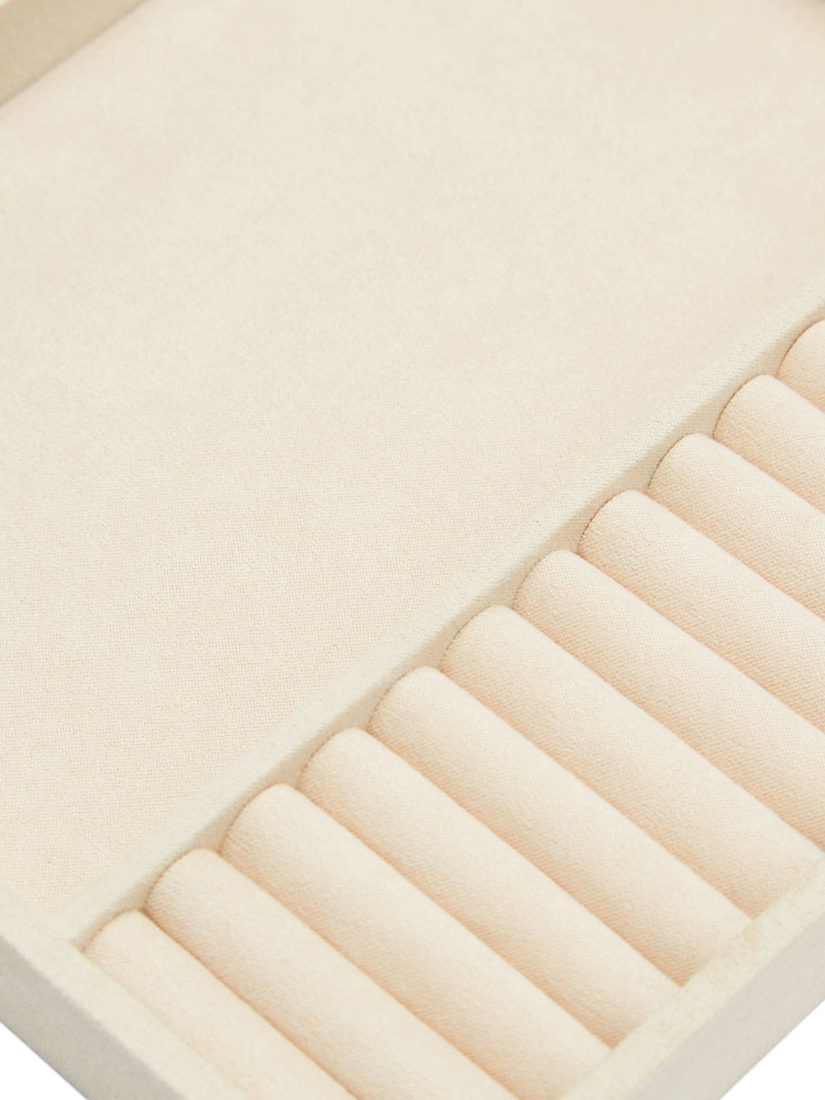 Beautifully organise and display jewellery with the WOLF Vault multi-compartment and ring half tray insert. This insert fits neatly into all stackable vault trays.