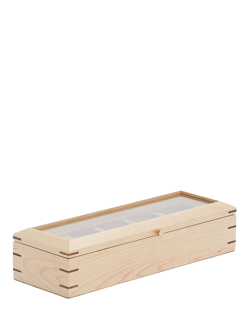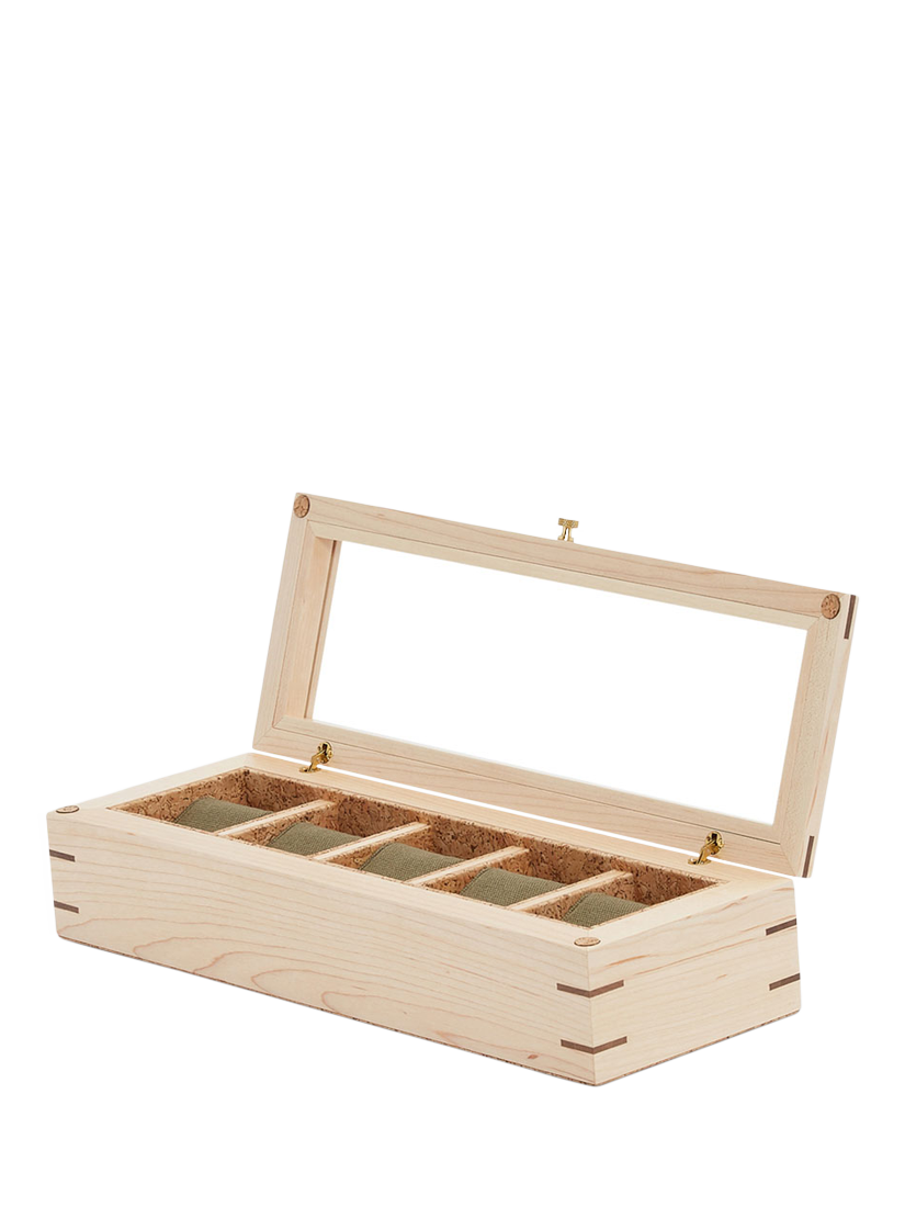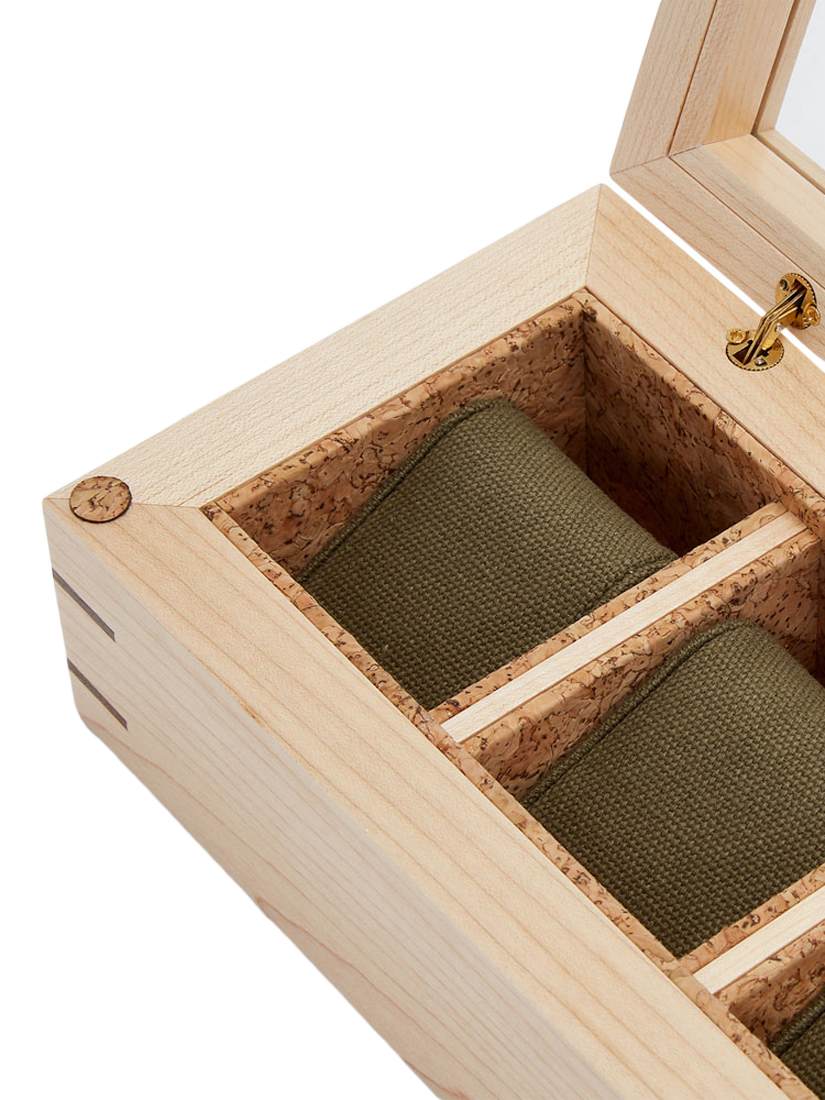 The WOLF x Analog Shift 1976 collection is a homage to the traditional cork packaging from the 1970s. The Flatiron II 5 piece watch box was designed with the urban dwelling wristwatch enthusiast in mind.