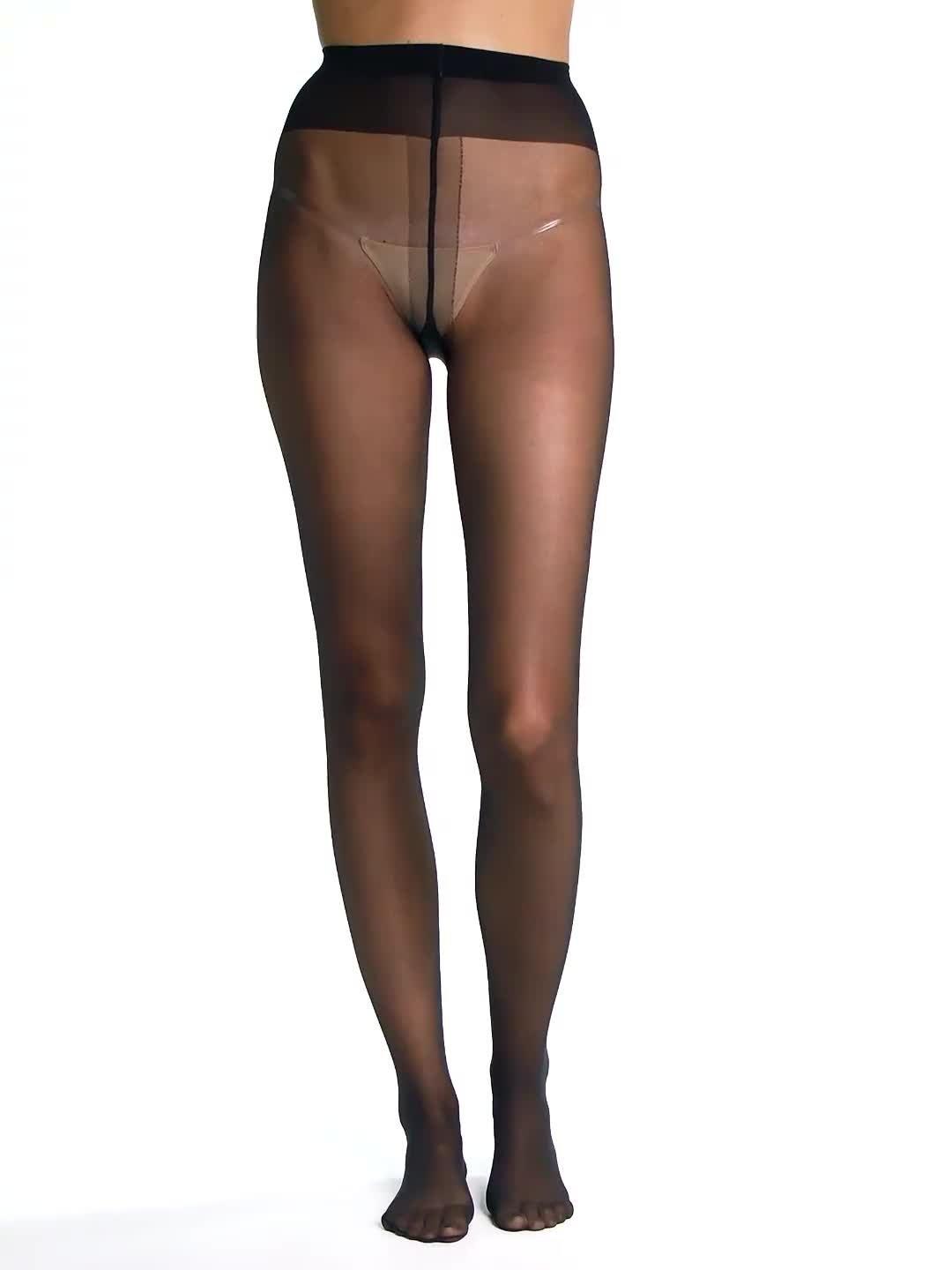 These tights feature a double-entwined elastane structure that stretches with every movement. The reinforced panty section featuring a cotton gusset provides optimal comfort, while the soft waistband guarantees the perfect fit. Complete with an almost invisible toe reinforcement: a shadow toe.