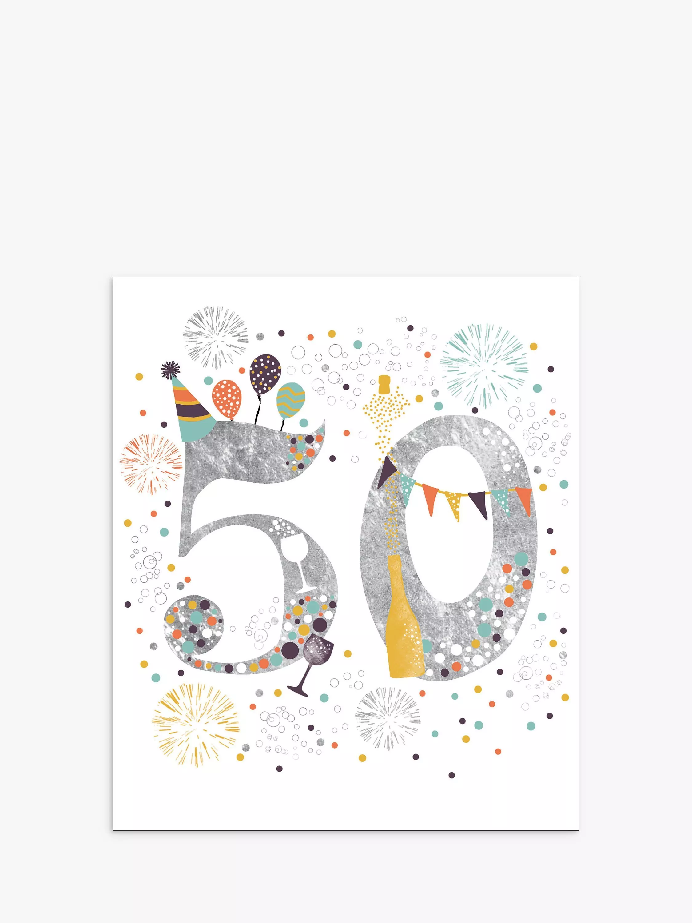 With a message inside that reads Happy 50th Birthday, this card comes with a white envelope.