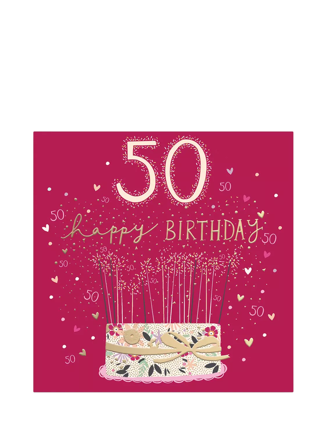 A greetings card from Woodmansterne to send happy birthday wishes. With a message inside that reads, Wishing you a wonderful 50th Birthday!, this card comes with a white envelope.