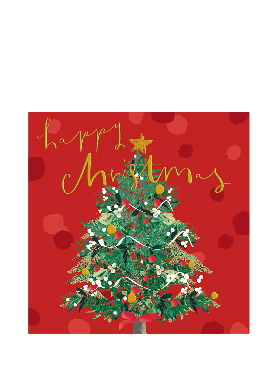 A greetings card from Woodmansterne that is perfect for celebrating Christmas. With a message inside that reads, Merry Christmas and a Happy New Year, this card comes with a multi-coloured envelope.