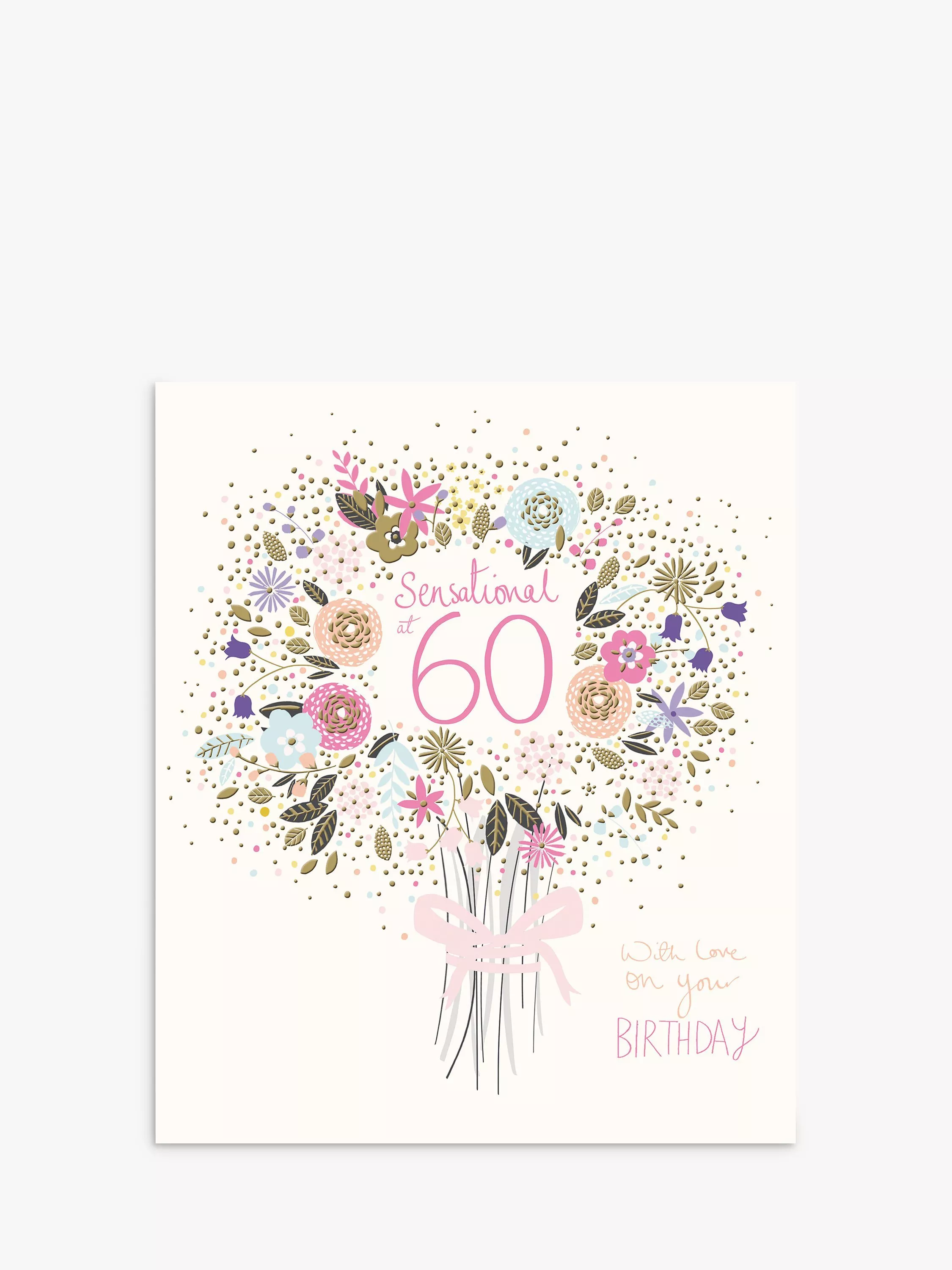 With a message inside that reads Happy 60th Birthday, this card comes with a white envelope.