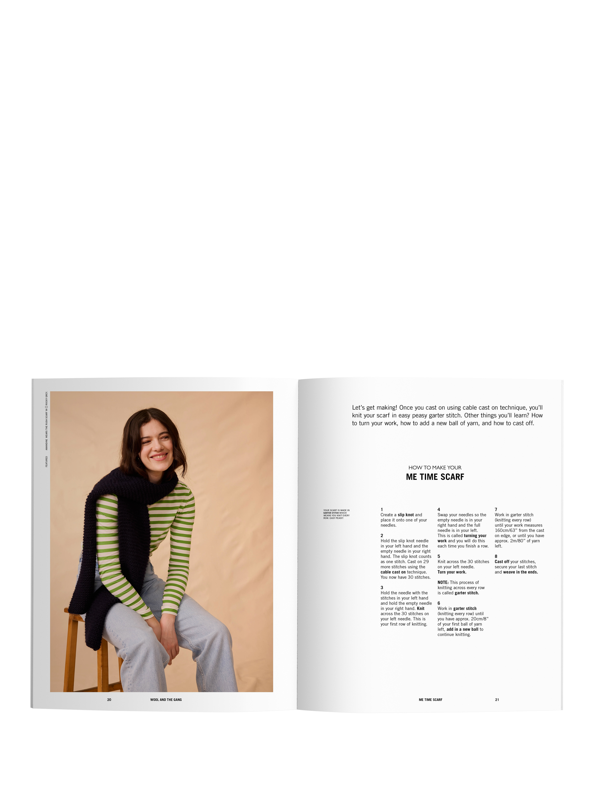 The Feeling Good Yarn Pattern Book includes eight beginner and easy knitting projects to get you started, including patterns from Wool And The Gang's best selling kits alongside two new patterns exclusive to this book. From small knitted accessories to bigger projects, there is a pattern in this book for every maker supported by clear instructions and technique explanations.