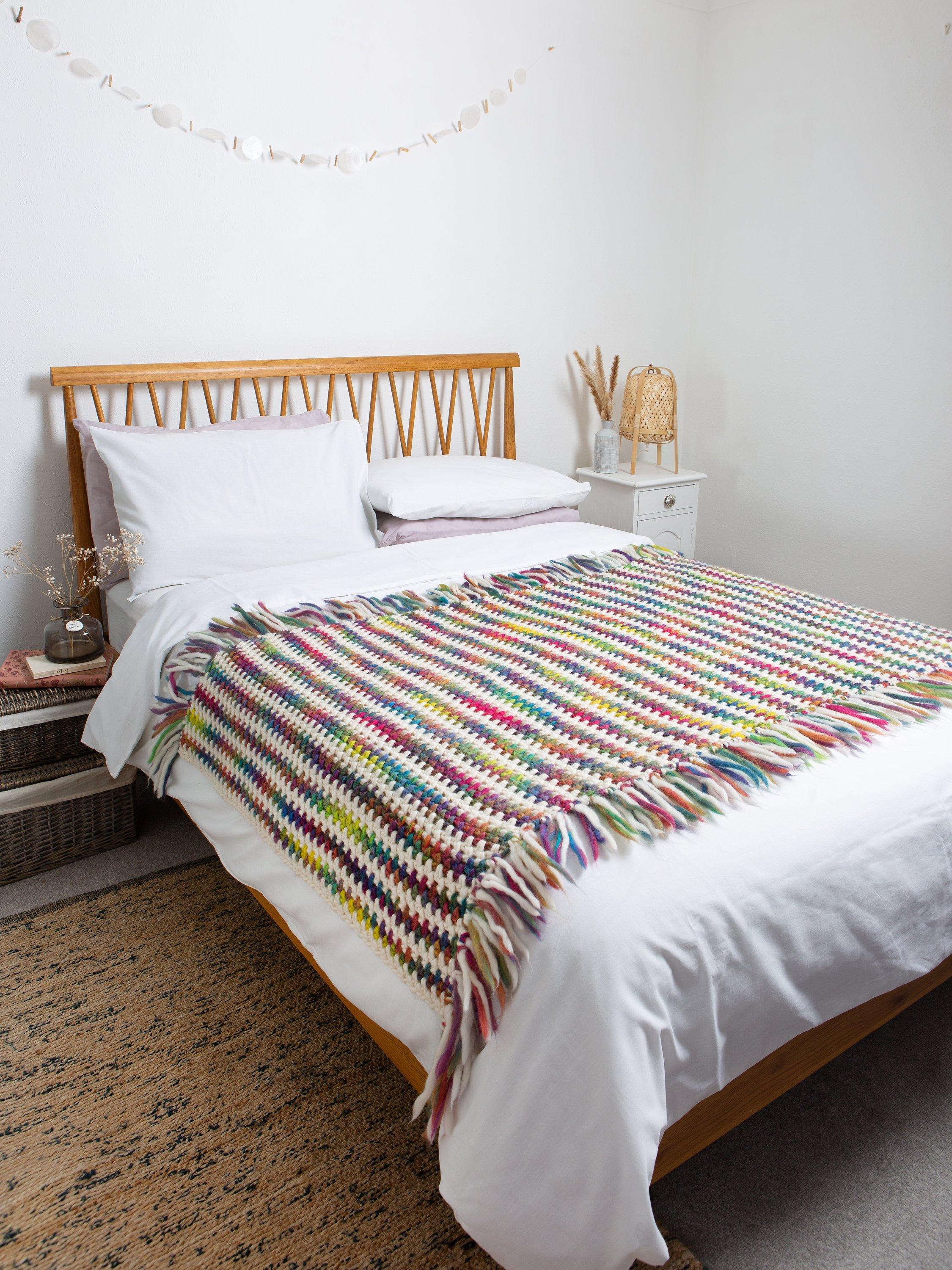 Get ready to snuggle up under the rainbow with the Ellie Blanket. Crafted from classic Cheeky Chunky 100% merino yarn, this easy-to-crochet, incredibly soft blanket will have you yearning for a lazy weekend cocooned up in it.