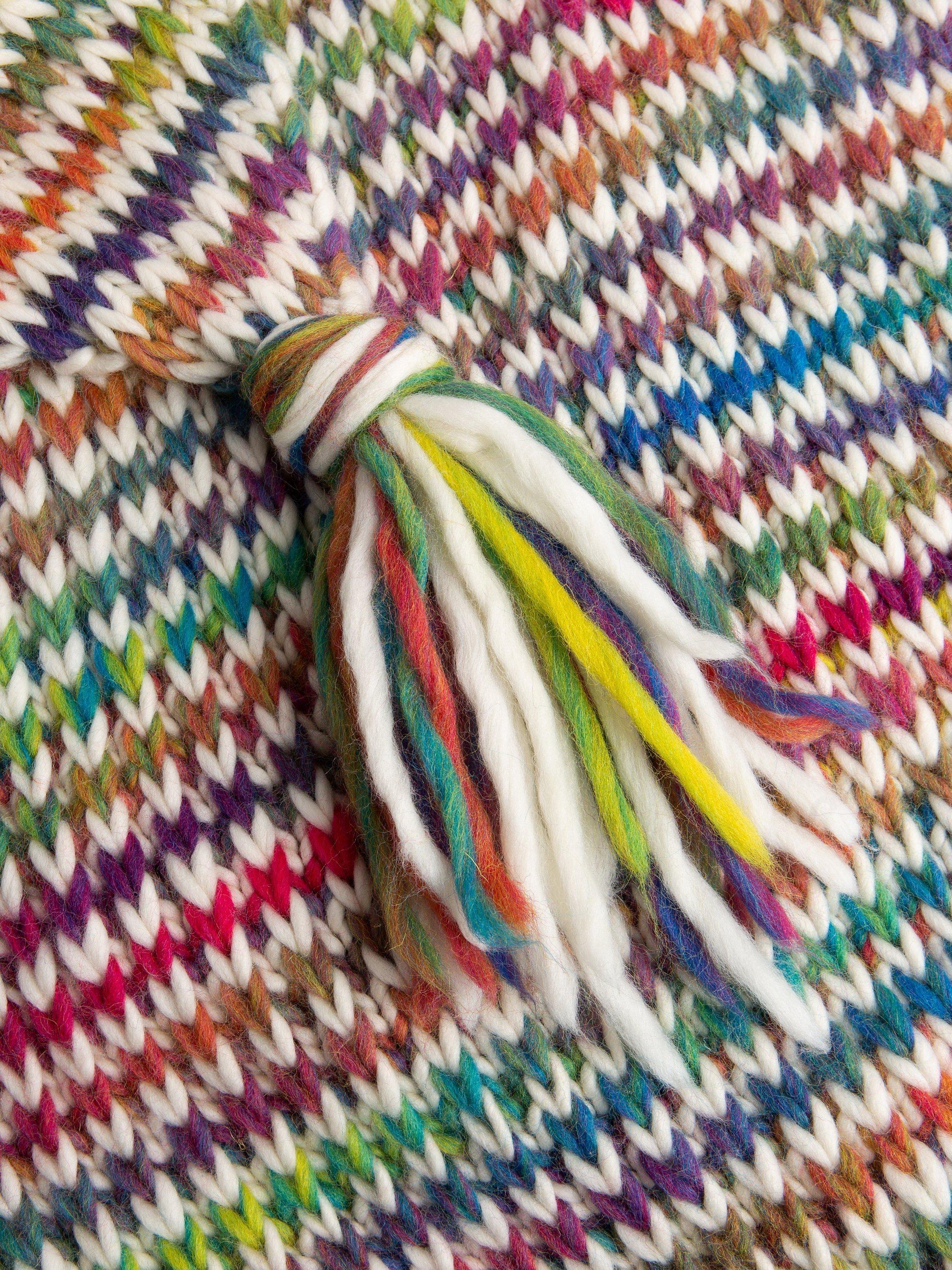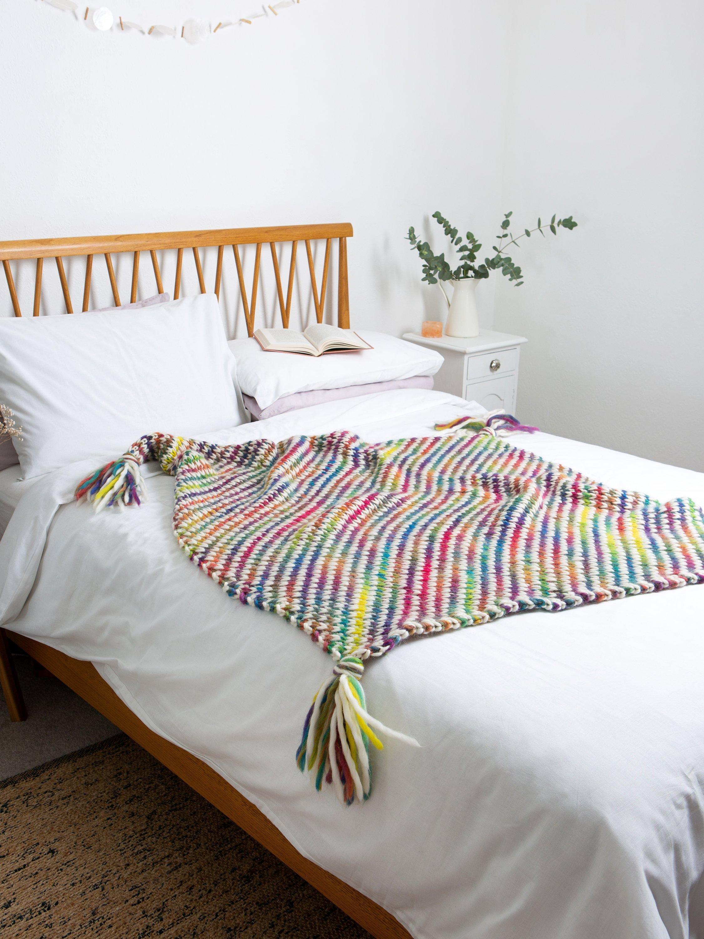 Get ready to snuggle up under the rainbow with the Ellie Blanket. Crafted from Cheeky Chunky Rainbow Twist yarn, this easy-to-knit, incredibly soft blanket will have you yearning for a lazy weekend cocooned up in it.