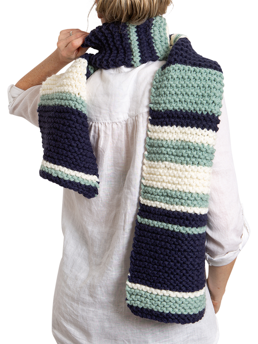 Not only is this a great beginner level kit, this unisex striped chunky scarf is great for keeping the cold at bay too. Included in this kit is our easy to follow "How To Knit" manual, to guide you through the basics.