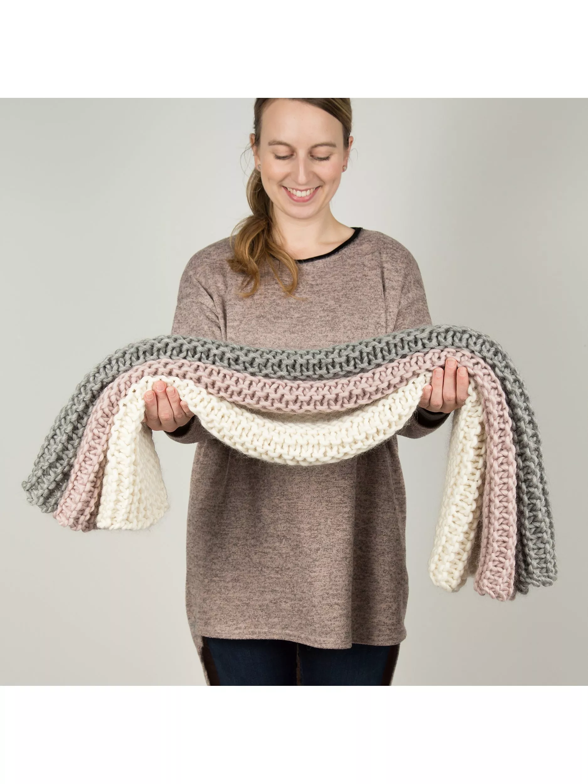 This popular kit comes with everything that you need to start your knitting journey! Perfect for a beginner, or somebody wanting a super chunky experience, you will have this beautiful blanket knitted up in no time at all.
