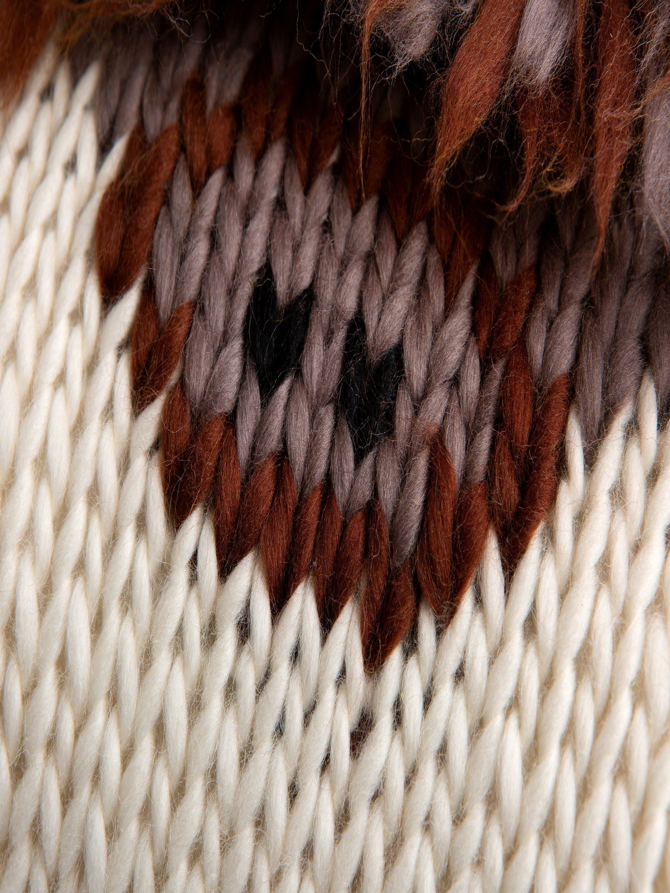 Designed in 100% merino Cheeky Chunky yarn, this cushion will not only add character to your sofa but also a layer of softness.
