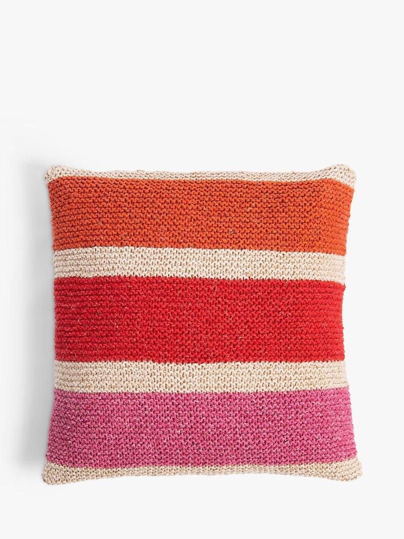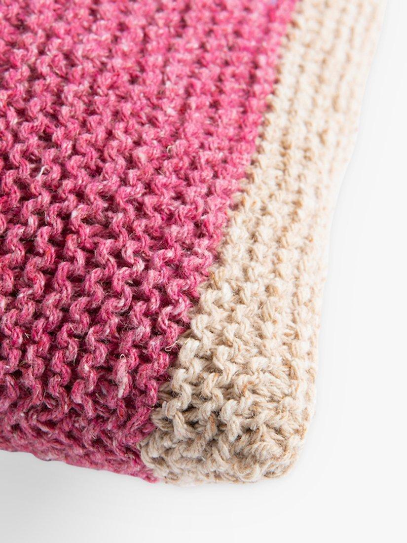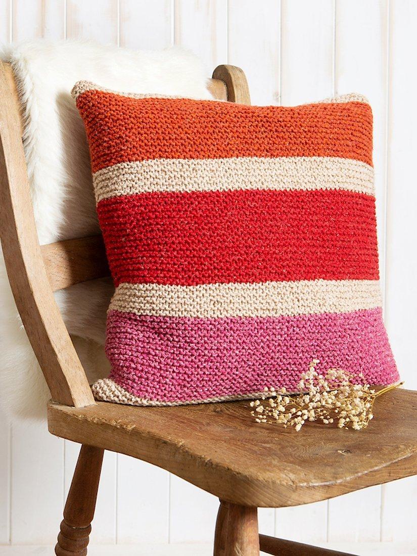 The eye-catching rainbow design using the colours from Wool Couture's Utterly Aran range makes for a beautiful knitted cushion that's perfect for every season of the year.