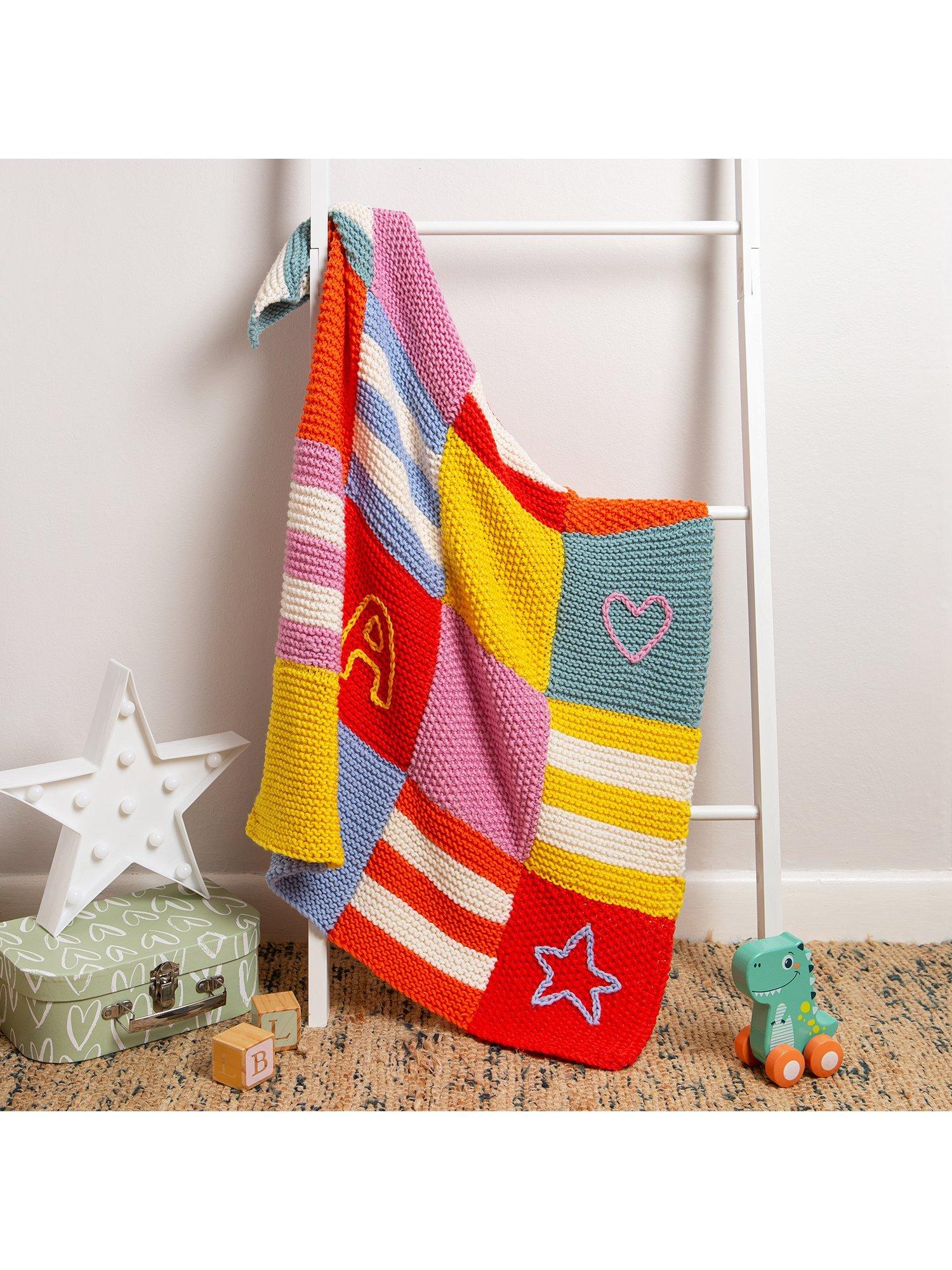 Once knitted up, we are sure this blanket will have many years of being loved, from soothing them on long journeys, to doubling up as a playroom picnic blanket. Why not embroidery the family surname to one of the patches and make it a heirloom to passed down to siblings and cousins.