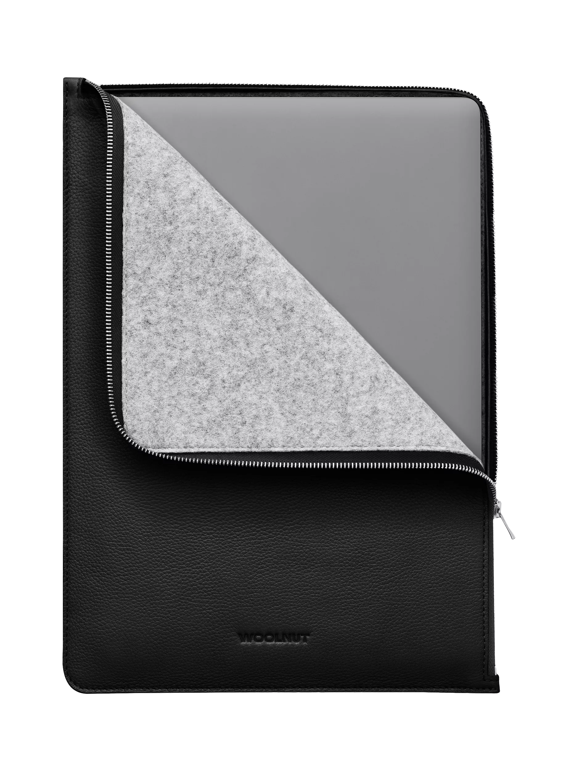 The folio exterior is made with WOOLNUT's signature full-grain leather of Scandinavian origin and the interior is lined with 100% natural wool felt. The zipper used for this folio is YKK's EXCELLA made in Japan, one of the world's most exclusive metal zippers.