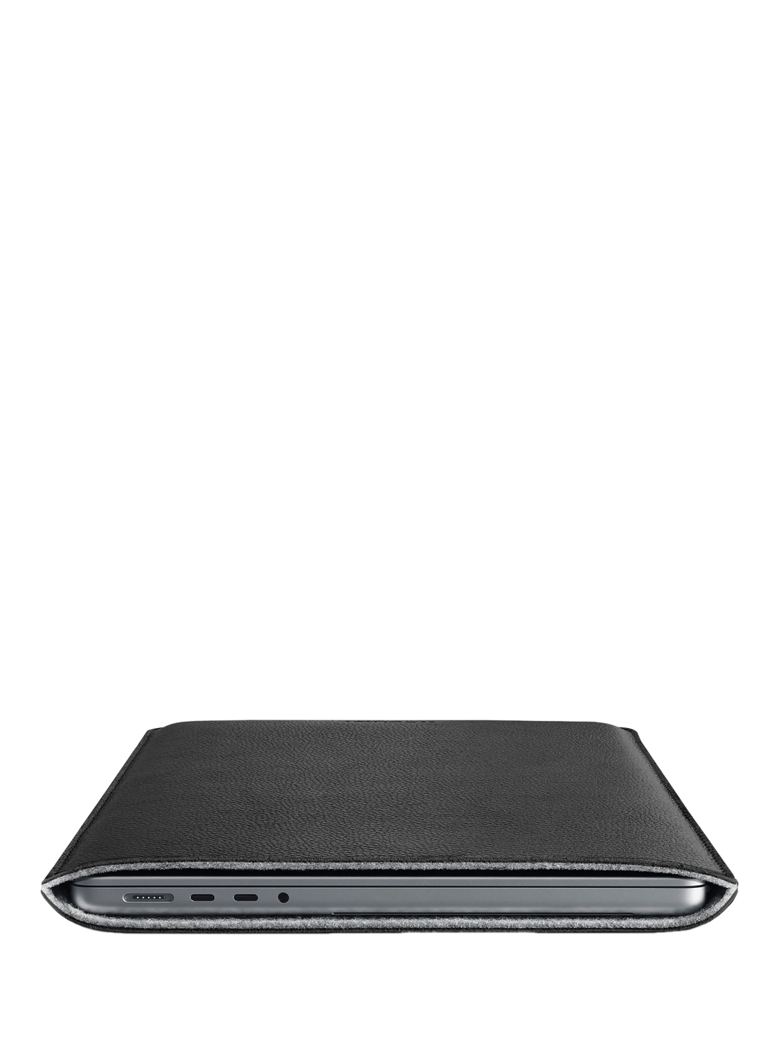 The sleeve exterior is made with WOOLNUT's signature full-grain leather of Scandinavian origin and the interior is lined with 100% natural wool felt.