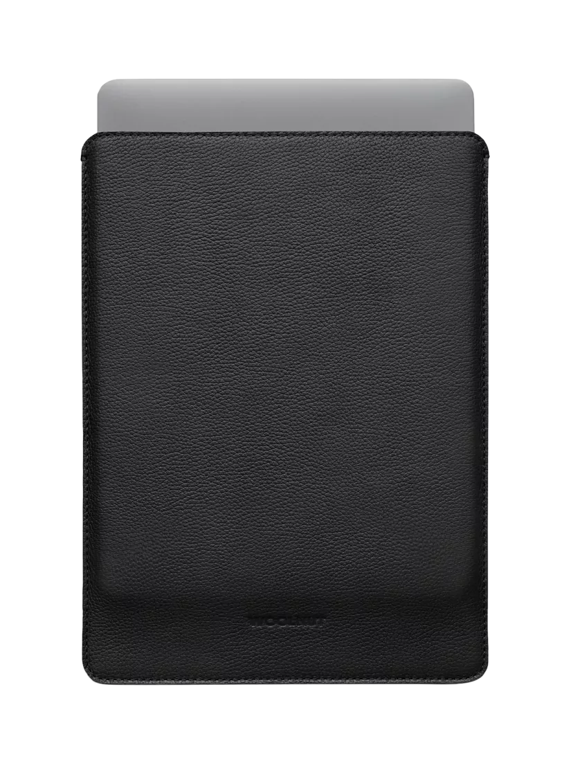 The sleeve exterior is made with WOOLNUT's signature full-grain leather of Scandinavian origin and the interior is lined with 100% natural wool felt.