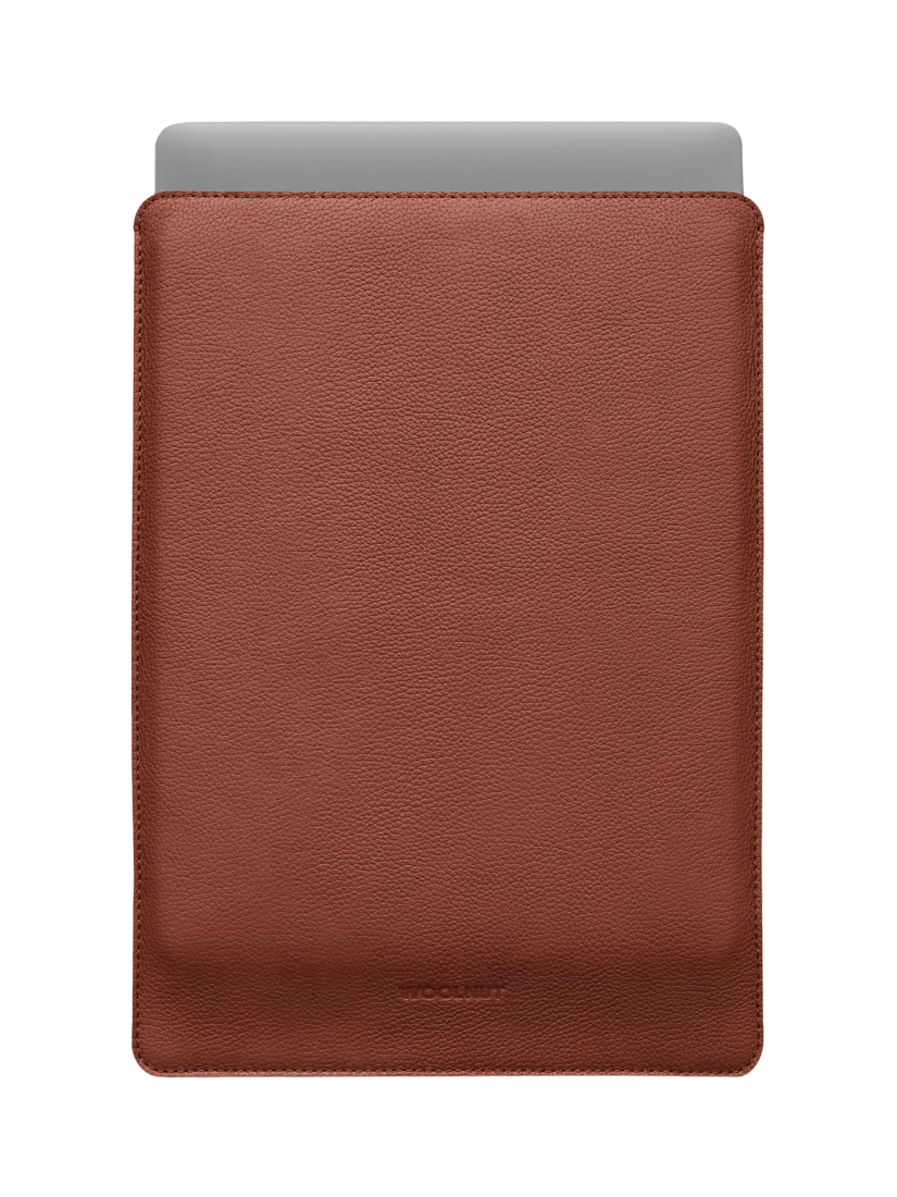 The sleeve exterior is made with WOOLNUT's signature full-grain leather of Scandinavian origin and the interior is lined with 100% natural wool felt.