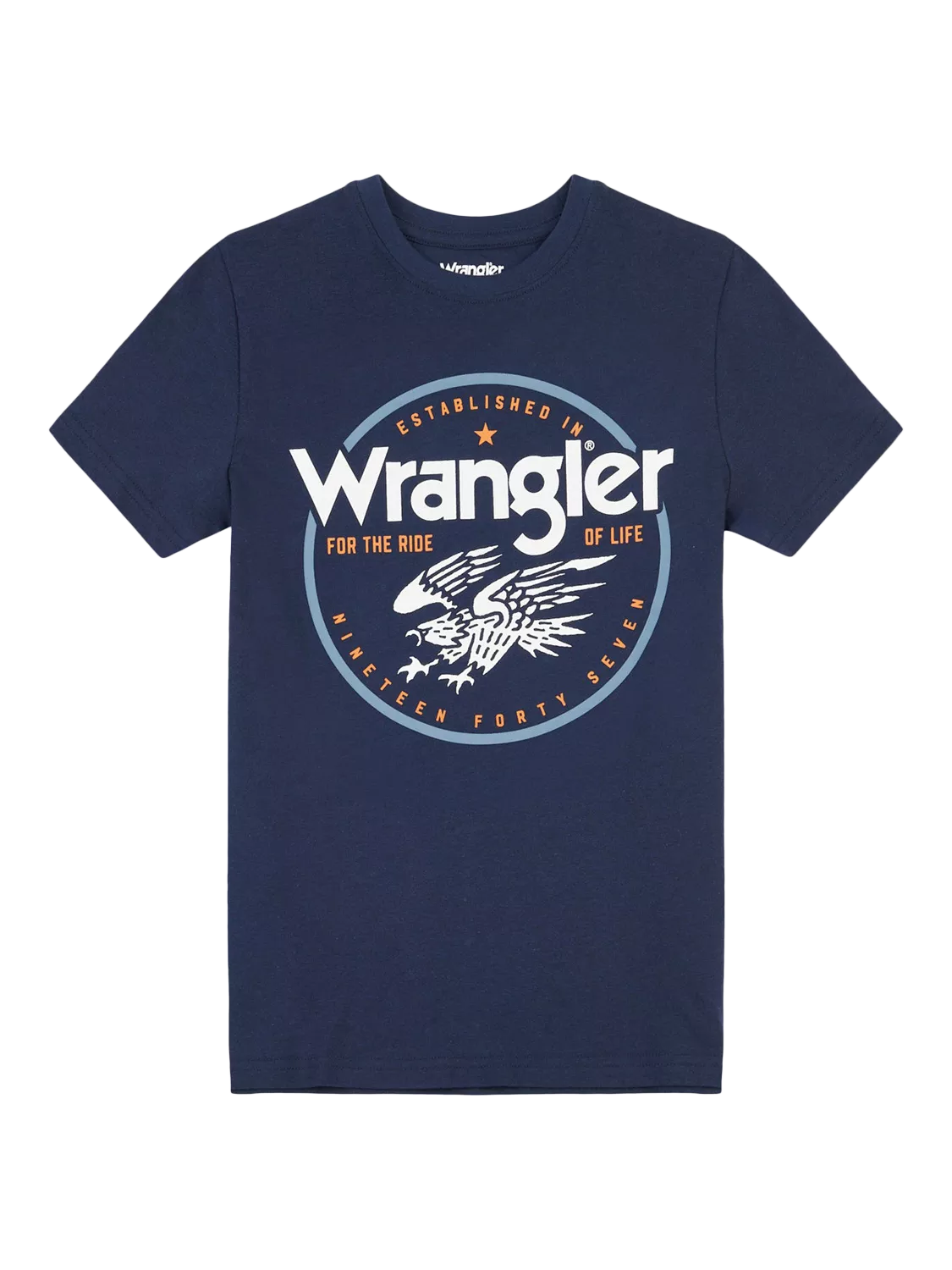 Soar high with this classic Wrangler t-shirt. Made from super-soft peached cotton, it's as comfy as it gets. Featuring a bold eagle and logo design, it's a nod to Wrangler's proud American heritage since 1947. Capturing the spirit of adventure, it's the perfect tee for young explorers.
