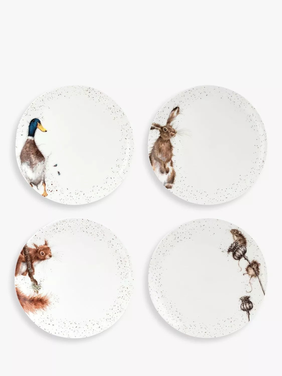 A 12-piece boxed dinnerware set with illustrations based on original watercolours by Hannah Dale. Each Wrendale Designs plate and bowl features its own charming character of British wildlife.