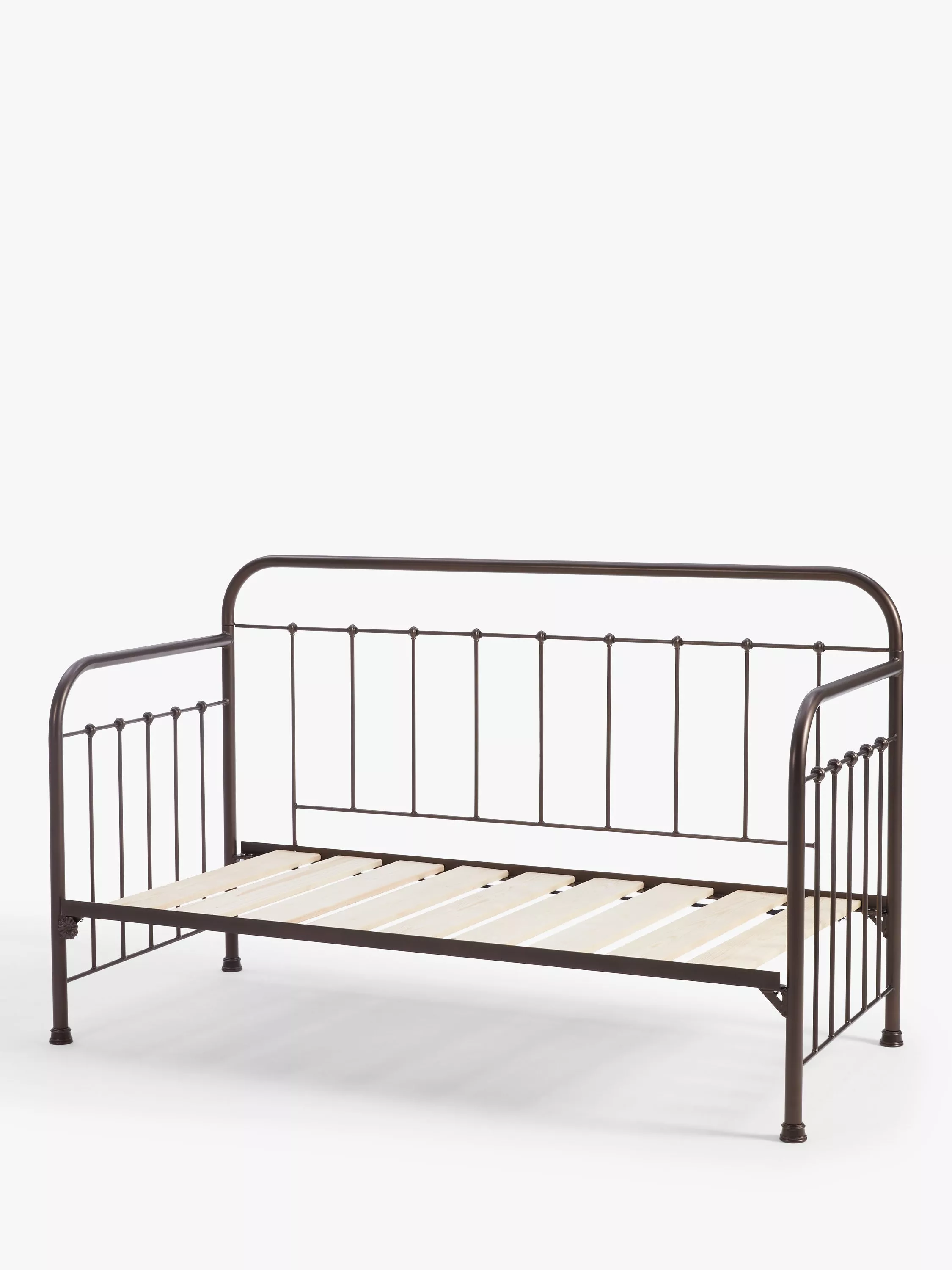 This traditional day bed is built from high-quality, powder-coated metal and features solid slats in the base.