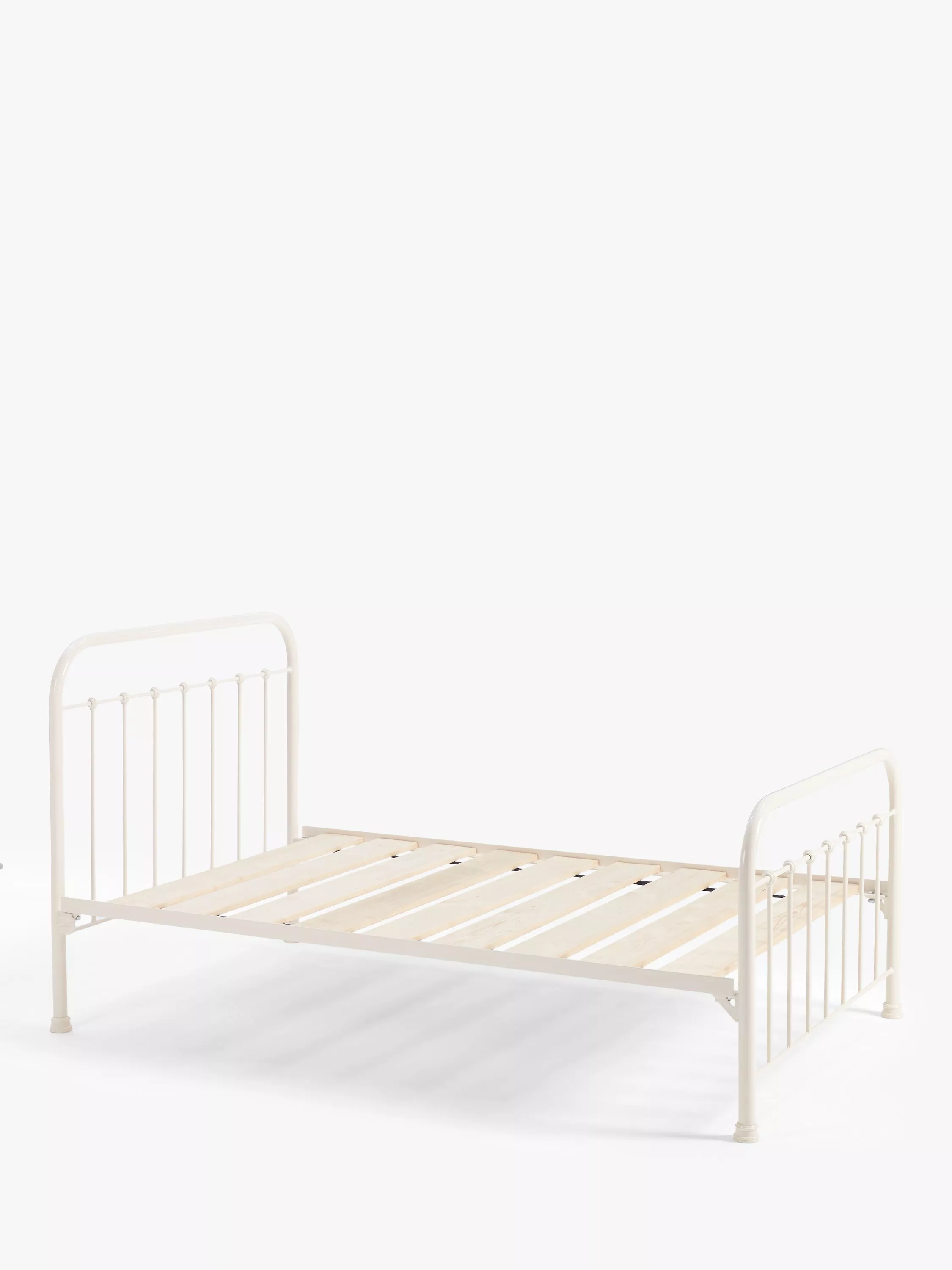 A modern classic, the Edward bed frame from Wrought Iron And Brass Bed Co. brings a more up-to-date feel to a traditional Victorian design. Showcasing slender bed posts, cast iron feet and finials, finished with a coordinating lower tailboard. Made in the UK from robust wrought iron. Solid slats made from Scandinavian pinewood provide a firmer base for your mattress and the powder-coated finish acts as a protective, high-quality layer.