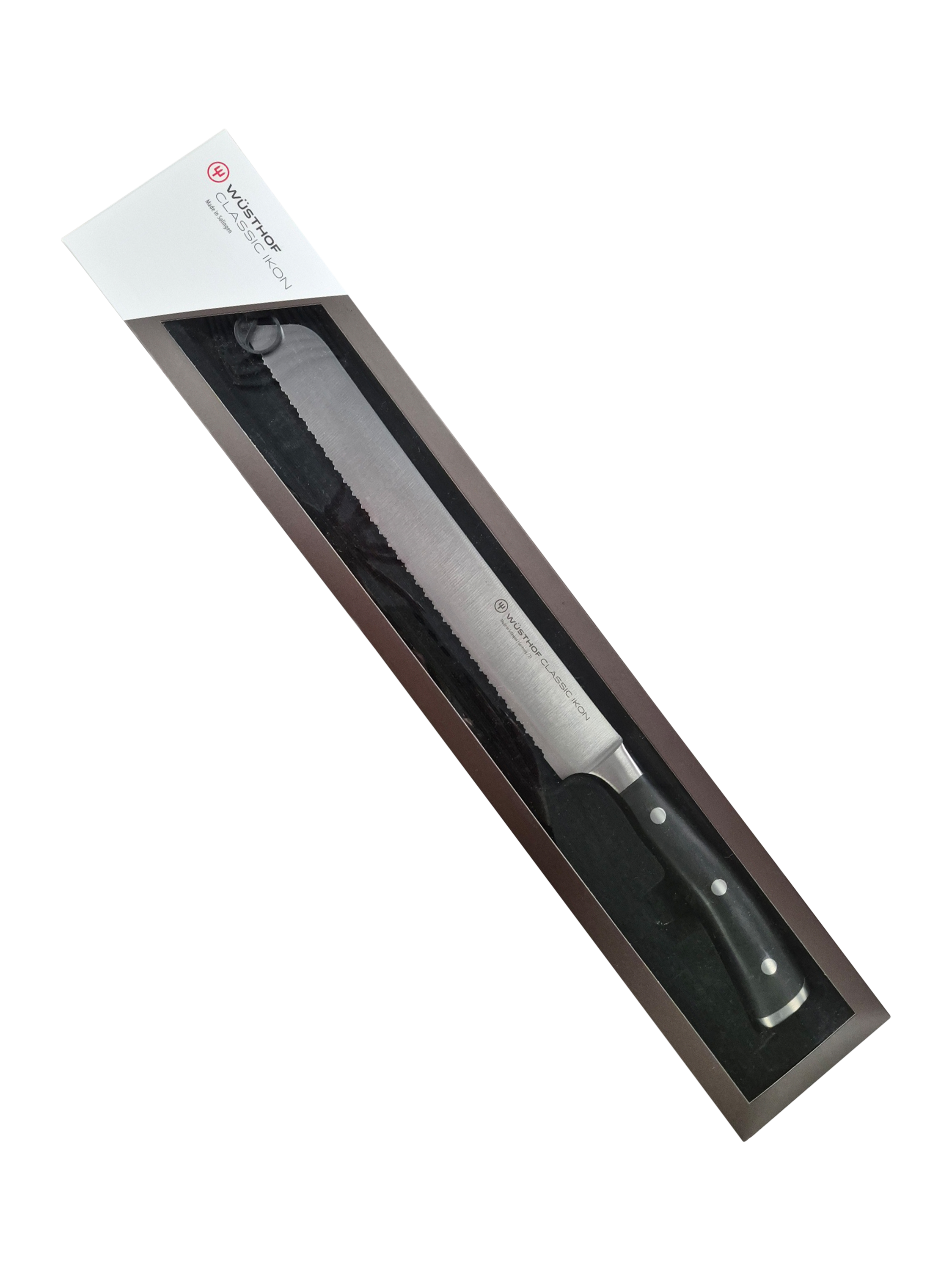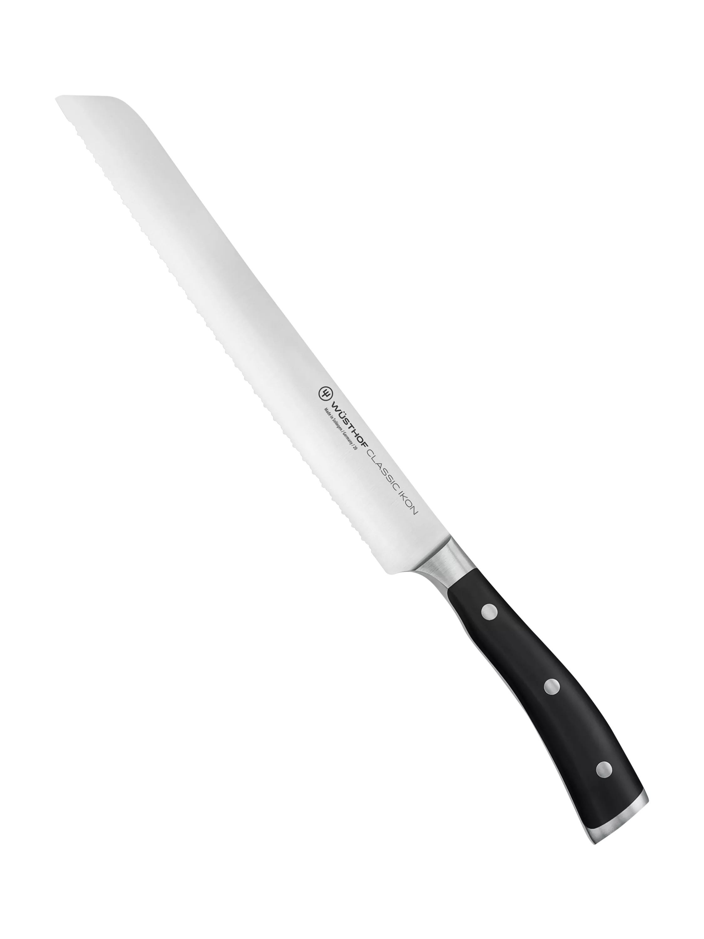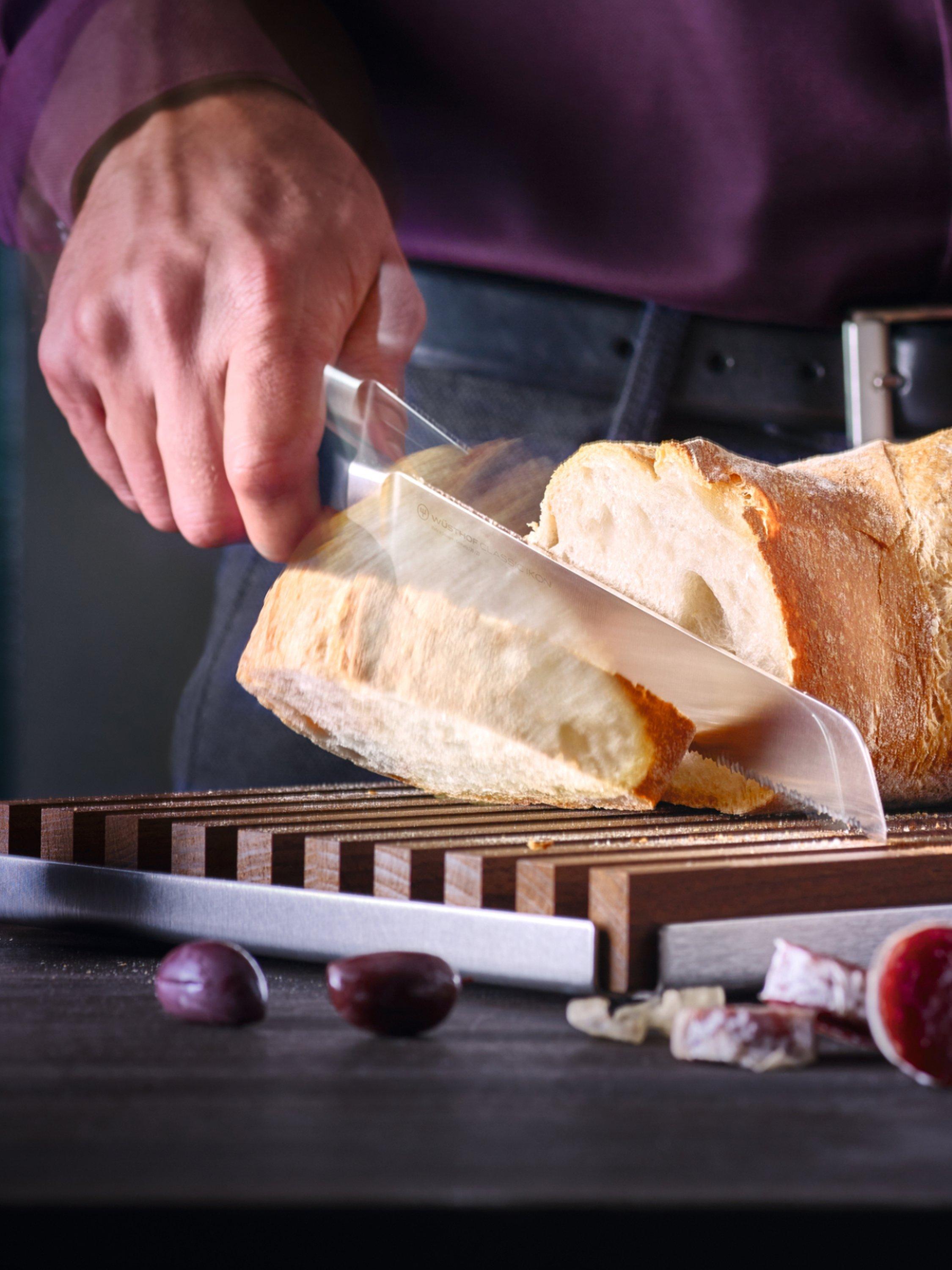 A bread knife can be considered one of the three most essential knives of the kitchen and the Classic Ikon series brings a sleek, elegant and comfortable handle to this kitchen companion. The half bolster (the protective junction between the handle and blade) allows the knife to be honed and sharpened the entire length of the blade.