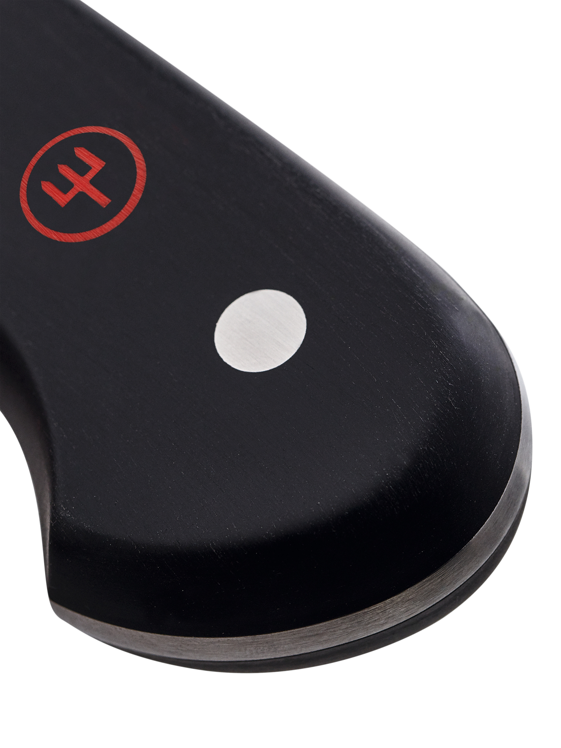 Meticulously crafted from a single piece of premium German steel, a knife in the WÜSTHOF Classic series possesses the integral strength of a fully forged blade through a 54-step manufacturing process consisting of a combination of laser-precise machinery and world-class artisan expertise. Its comfortable ergonomic handle is made from POM, a durable material with tight molecular structure to resist fading, discolouration and build-up of insanitary material. The full bolster (the junction between handle and blade) protects the hand from the sharp blade and balances the weight of the knife when using.